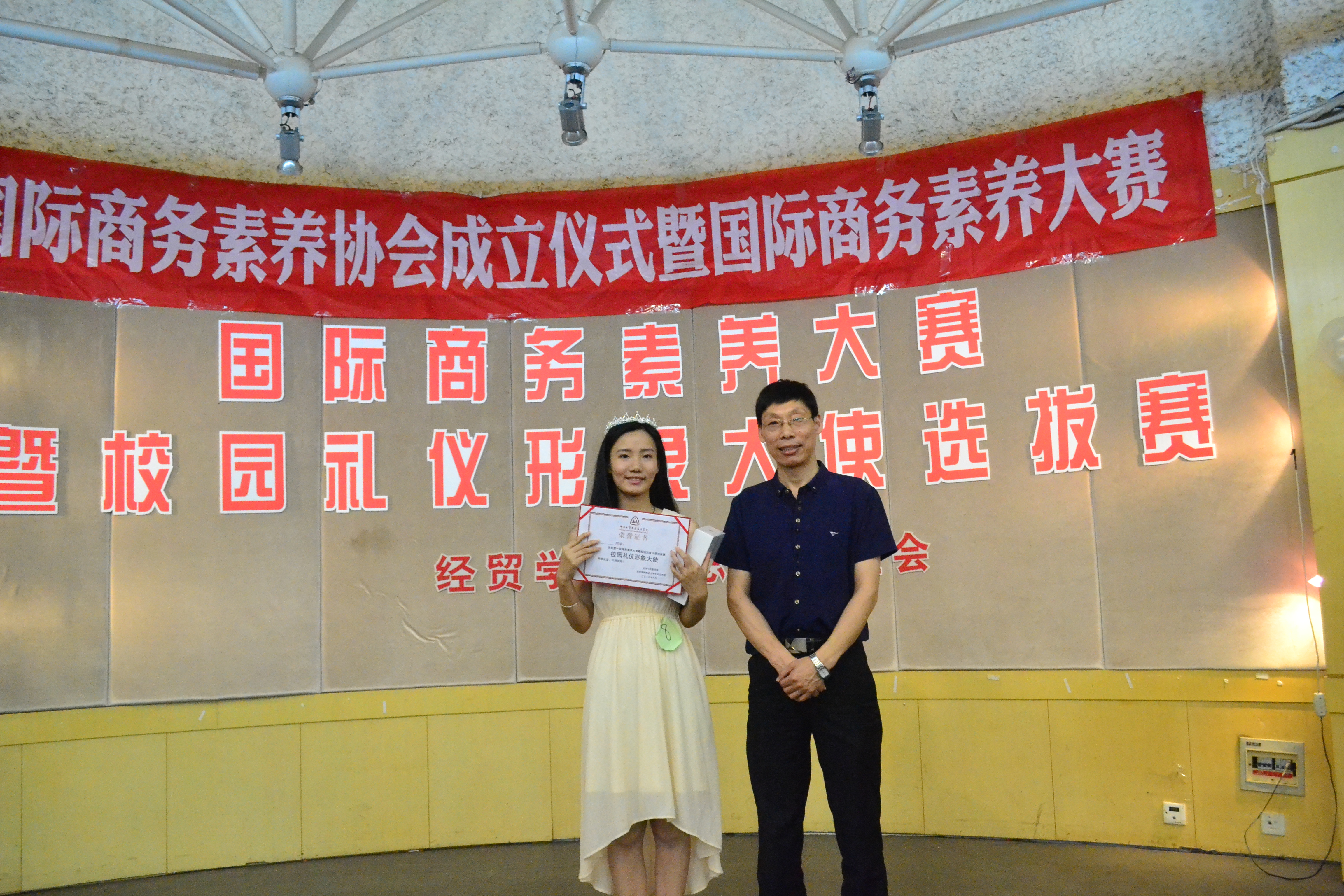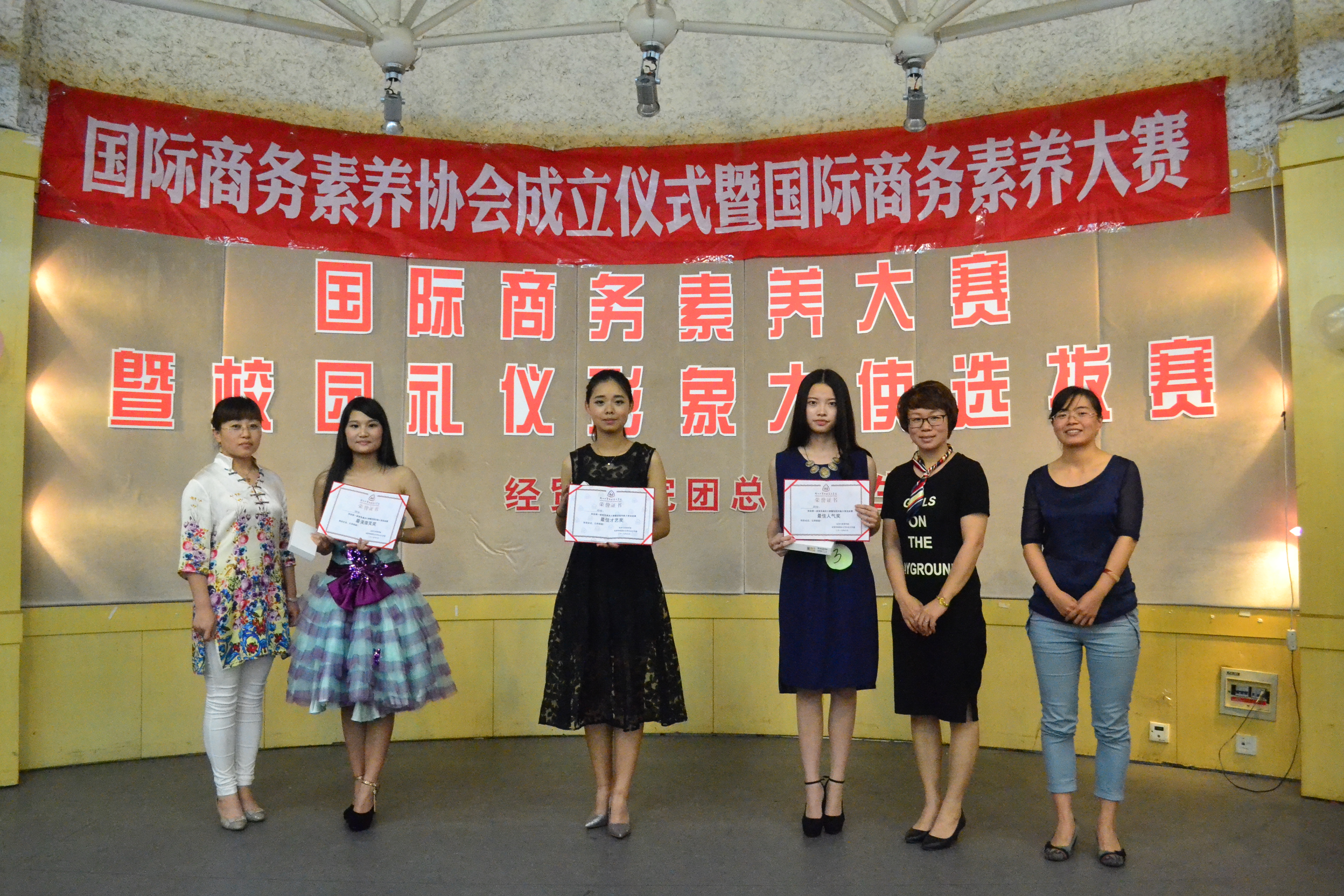2015年6月10日,经贸公司举行了国际商务素养大赛暨校园礼仪形象大使选拔赛在阶梯教室隆重拉开帷幕。经贸公司党总支书记项光春、人文系白毓秀、商务英语专业国际商务谈判主讲教师金秀金、商务礼仪主讲教师梅伟阳、玫琳凯公司高级美容督导林少云列席会议并担任评委。