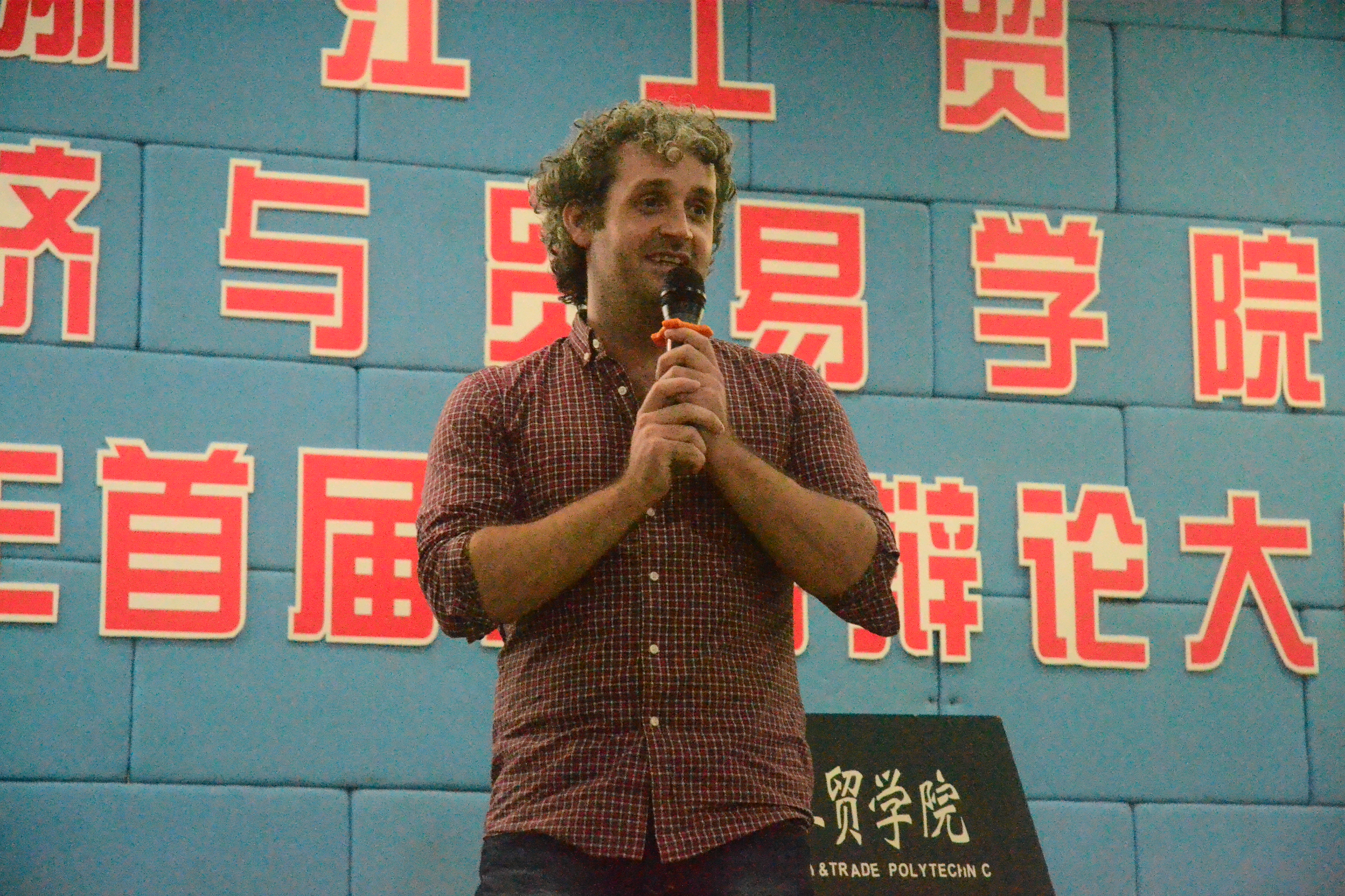 大赛最后,外教Graig致辞。他首先对同学们的精彩表现予以肯定,对同学们在辩论过程中表现出来的自信以及良好思维予以赞扬。他提出,这是同学们参加的第一届辩论赛,虽然存在一定的不足,但同学们都具备基本的辩论素养,并希望同学们在日常课堂中,在各项活动中再接再厉,多方位锻炼自己的言辩和应变能力。