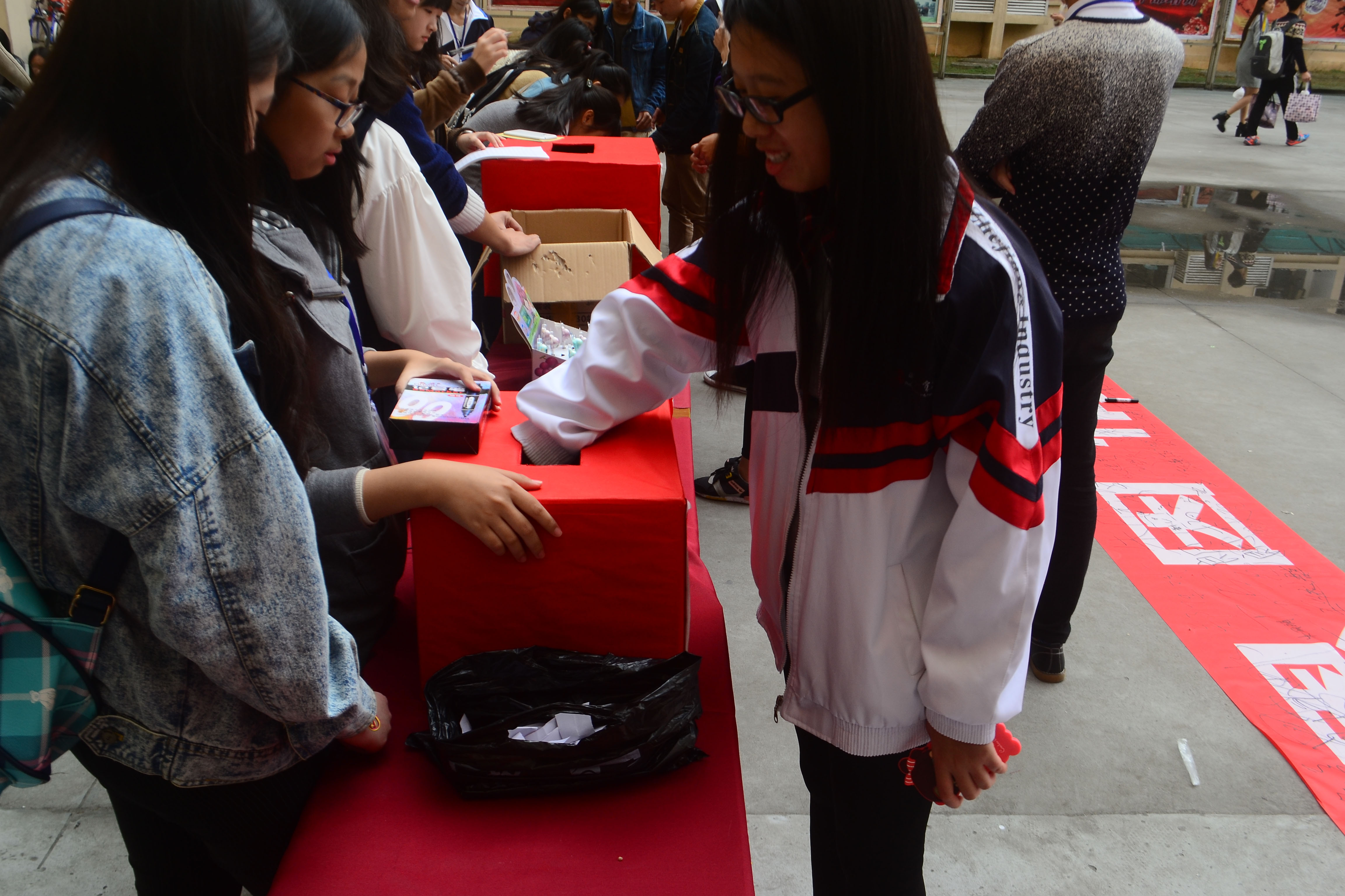 路过的师生纷纷在感恩横幅上签字