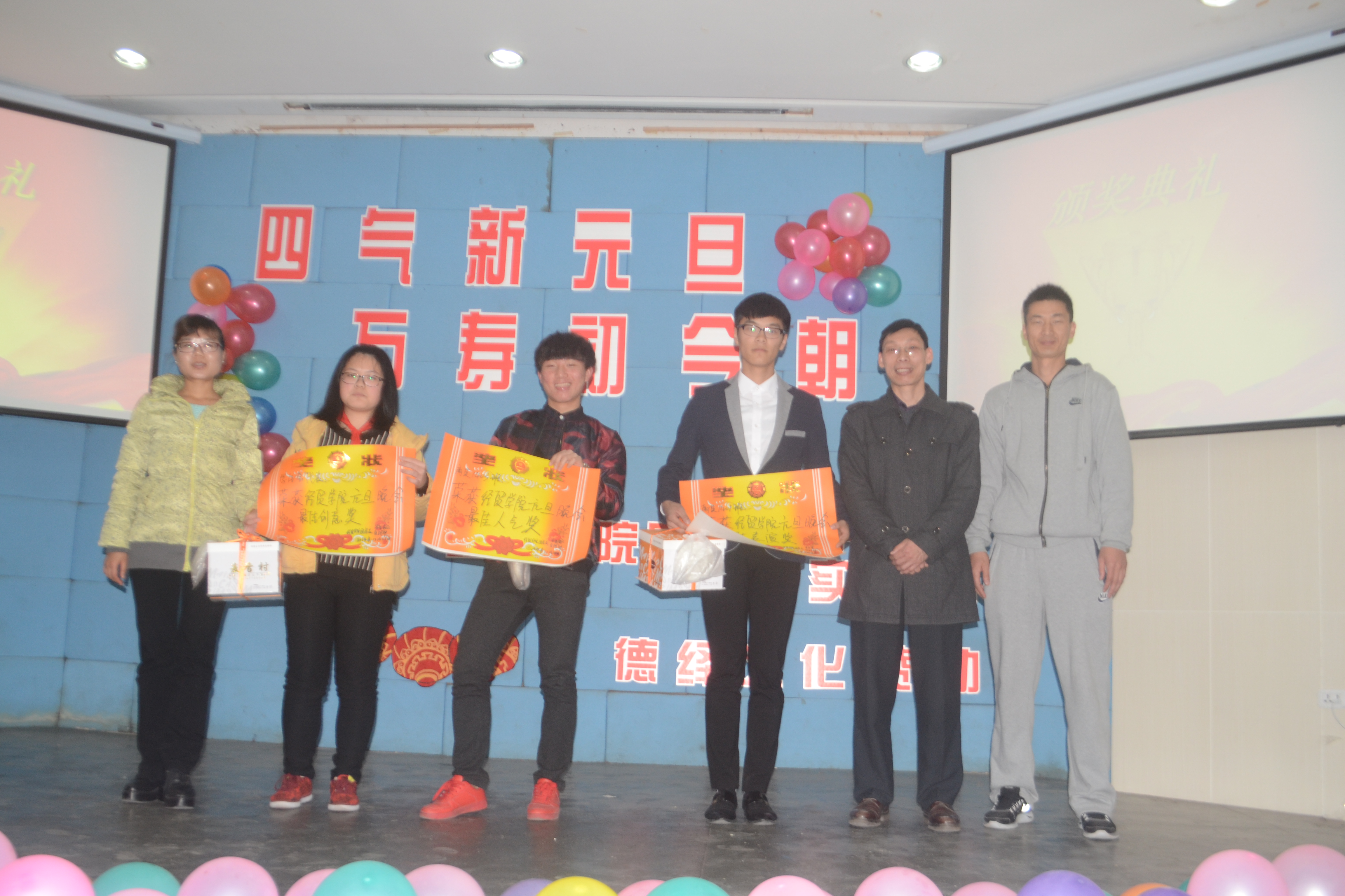 告别属于光荣与梦想的2014,迎接充满惊喜与希冀的2015。近日,在辞旧迎新的美好时刻,经贸公司“四气新元旦,万寿初今朝”的元旦文艺汇演晚会在阶梯教室隆重举行。经贸公司党总支书记项光春,团总支书记高莎,辅导员向政、周妍妍、郑雪琦等老师及团总支员工会与2014级全体员工参加了此次晚会。