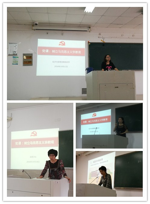 根据经贸公司党总支统一部署,10月17日至28日经贸公司20名教师党员与班级结对,开展24场主题为“树立马克思主义宗教观的专题党课”,覆盖2014、2015、2016级员工共1200余人。