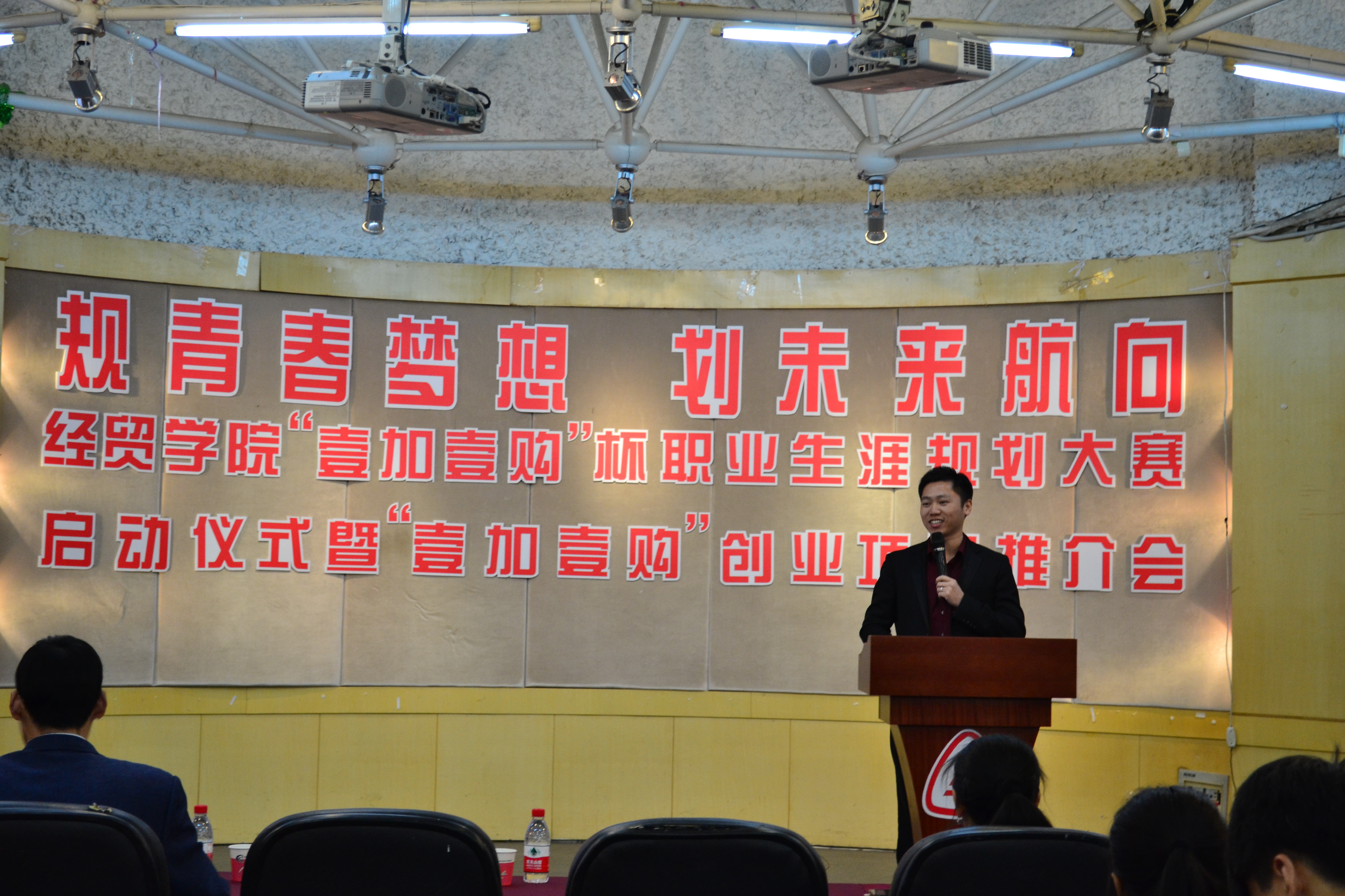 缪经理针对创业指导发言,他指出,传统的创业方式包括明确的目标、完善的规划、坚定的信念、匹配的经验以及充足的资金,缺一不可。并提出,公司将为经贸公司本次职业规划大赛提供全程支持,希望为更多有创业冲动的同学提供机会。同时,他还就自己公司的颠覆性创业项目“壹加壹购”的优势进行介绍。会后,同学们对“壹加壹购”的创乐园模式踊跃提问,对创业项目表现出浓厚兴趣。