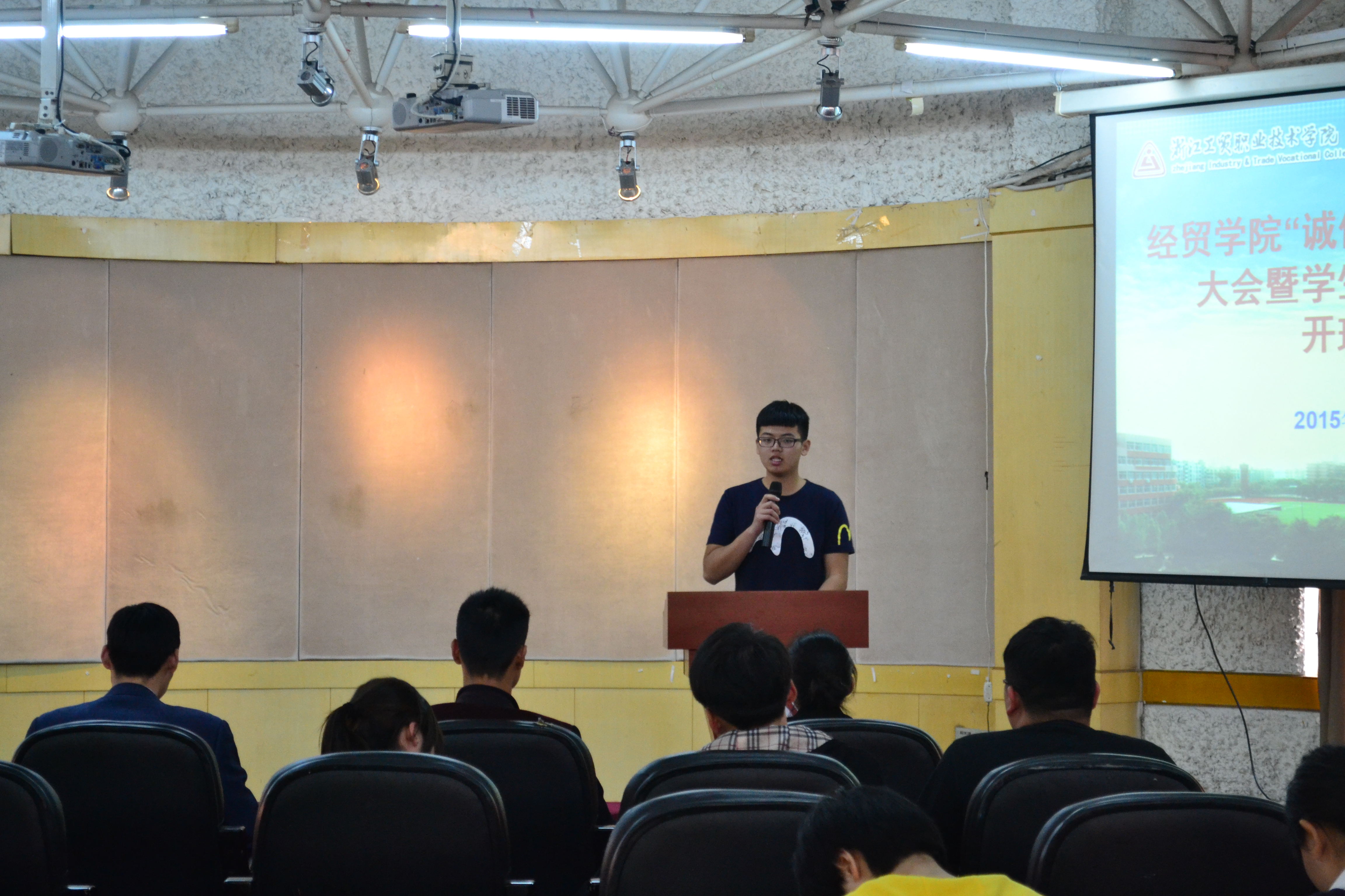 经贸公司团总支员工会全体学会全体员工干部及2014级各班同学150余人参加了会议,会议由辅导员高莎主持。