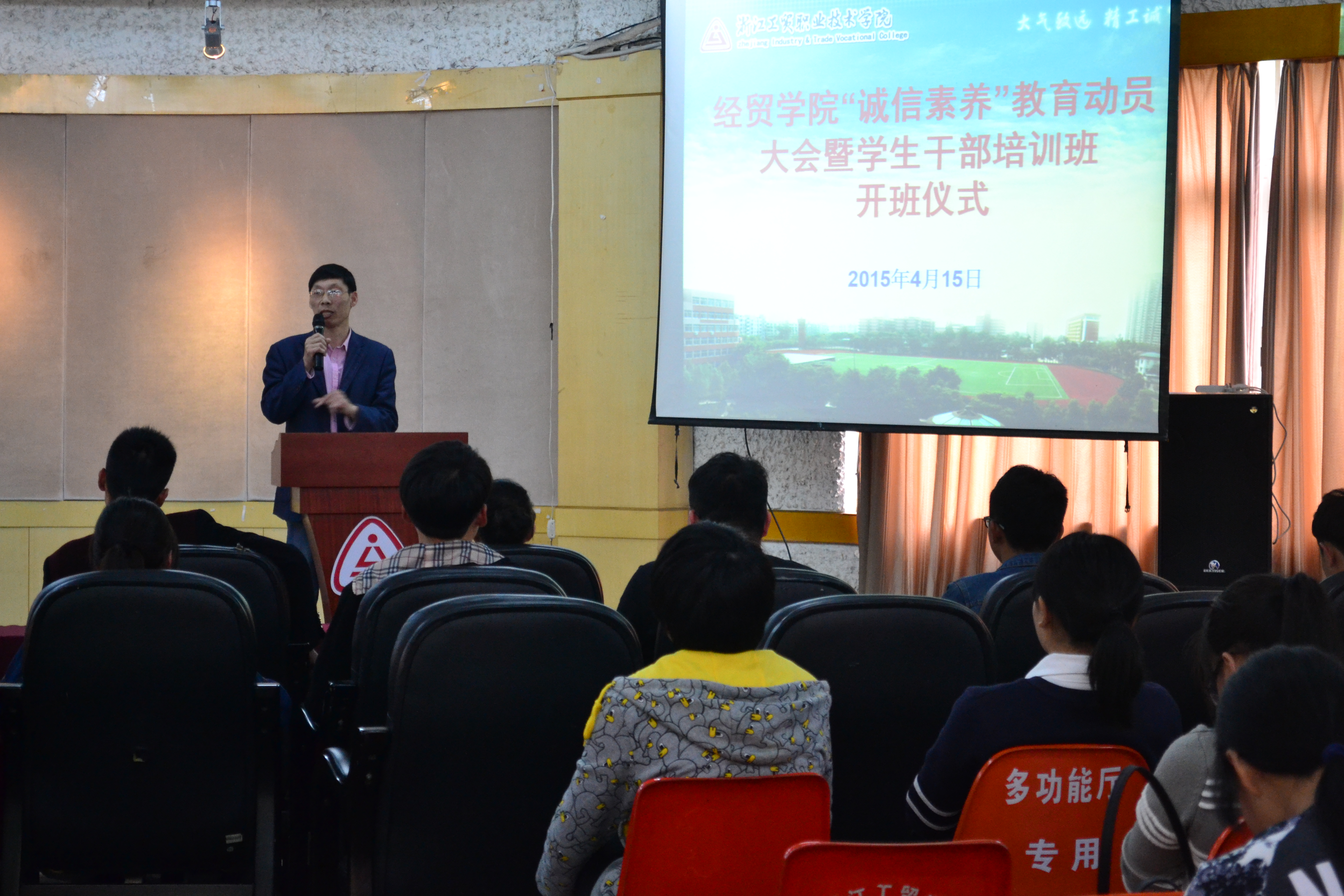 为进一步推进员工商务素质培养,切实加强员工干部队伍建设,提升员工干部的业务素质和水平,4月15日下午,经贸公司团总支员工会在1号楼多功能厅举行了“诚信素养”教育动员大会暨员工干部培训班开班仪式,经贸公司党总支书记项光春,党总支委员、辅导员周妍妍,辅导员向政、郑雪琦、高莎出席了大会。