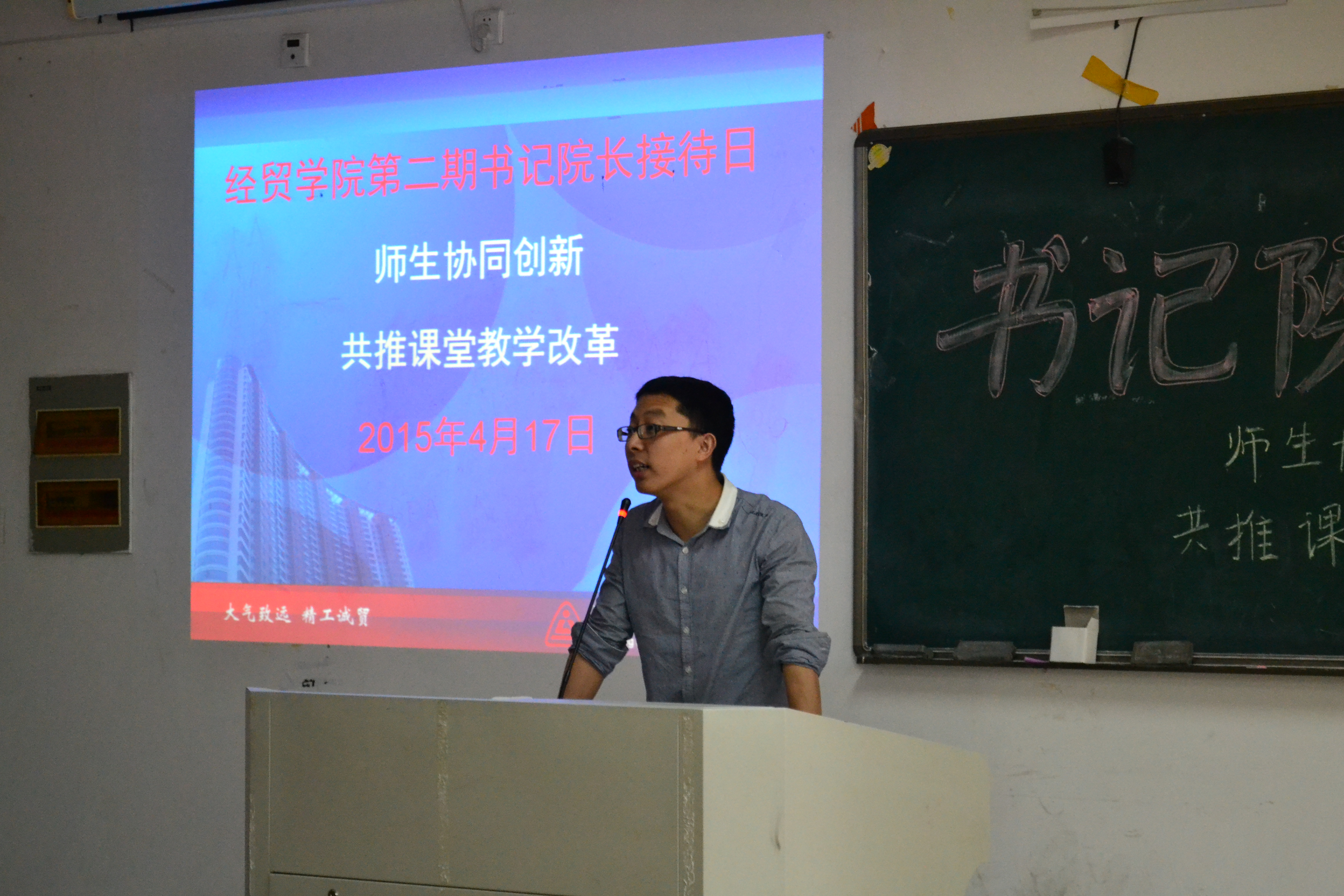 据了解,本次会议是继经贸公司“师生协同创新 共推管理升级”后举办的第二期书记经理接待日,主要针对课堂教学开展的与同学面对面交流活动,从同学中来到同学中去,充分解决同学们在课堂学习实际中遇到的难题、问题,为公司、分院的教学改革加码添力。