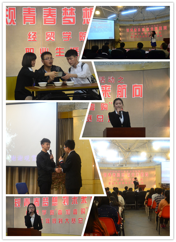 青春的激情,融注着创意的活力。青春的张扬,凝聚着创业的渴望。为展示分院员工创业培训和创业实践的成果,引导员工自觉树立正确的成才观、就业观和择业观,提升员工就业、创业技能与实践能力,4月23日晚在多功能厅,经贸公司拉开“规青春梦想 划未来航向”老员工职业生涯规划大赛总决赛的序幕。经贸公司党总支书记项光春,人文系教师夏耀,中国帝一源合电子商务有限公司总经理缪存科,2014年度浙江省最佳职业规划之星邵宏达担任本次大赛的评委。