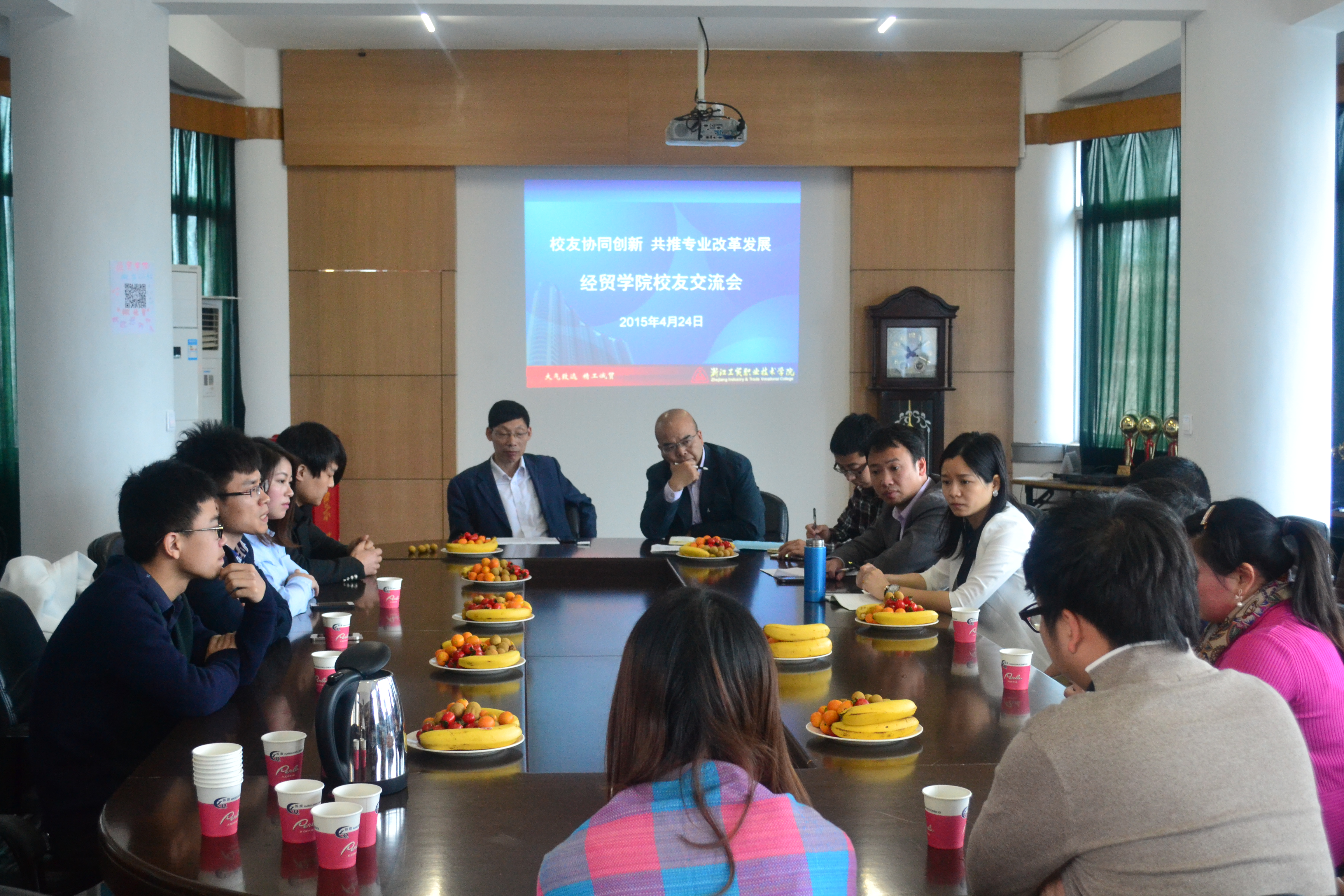 员工是公司发展的宝贵财富,为充分发挥员工聪明才智,汇聚专业改革“智库”,4月24日下午,借公司55周年校庆邀请员工回校庆祝之际,经贸公司在1号楼六楼会议室举行员工与专任教室的专场座谈会。专门来院参加55周年校庆的16位历届员工参加了座谈会,会议由经理汪焰主持。