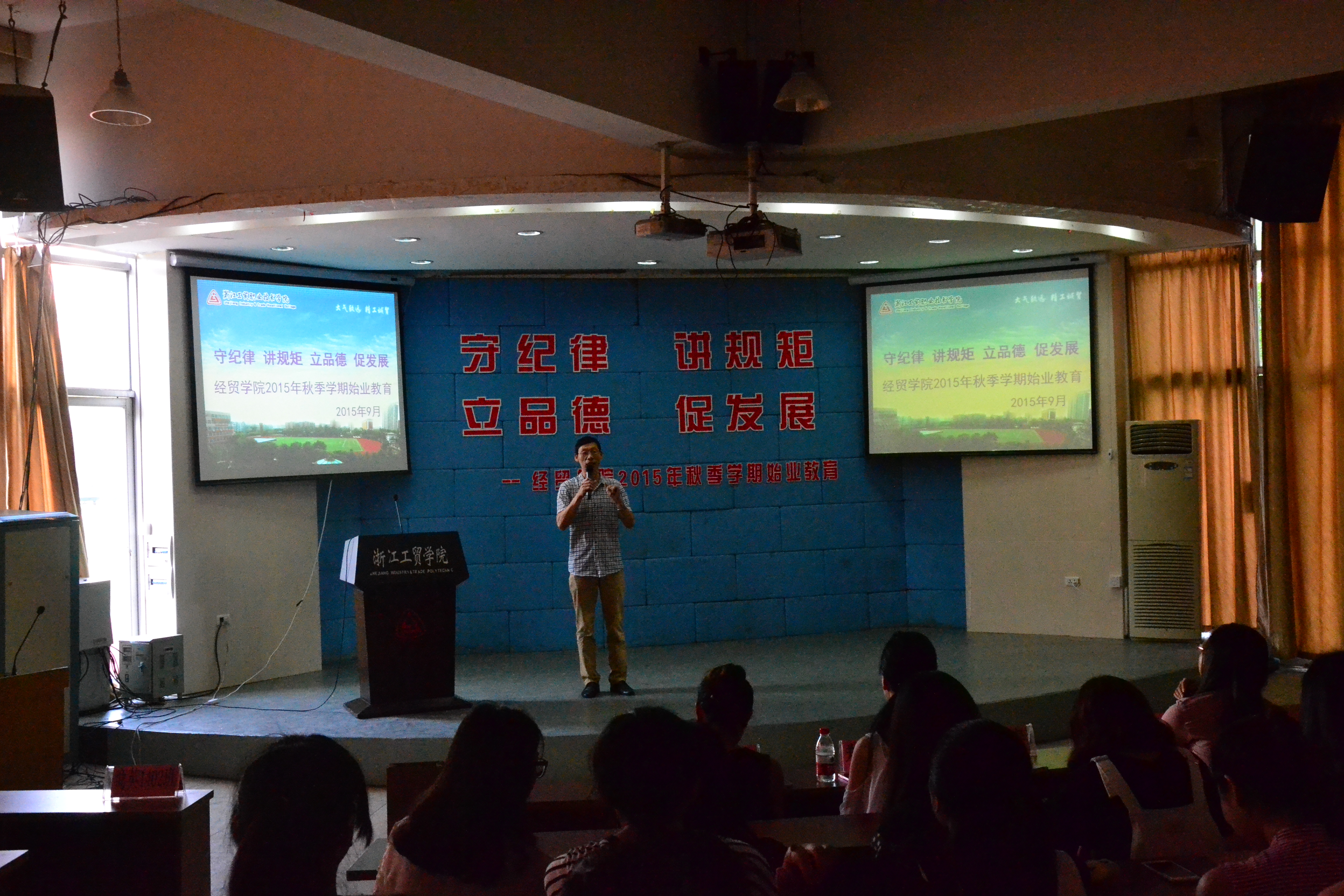 9月13日,经贸公司主题为“守纪律 讲规矩 立品德 促发展”2015年秋季学期始业教育在一号楼阶梯教室举行。经贸公司党总支书记项光春做始业教育主题讲话。