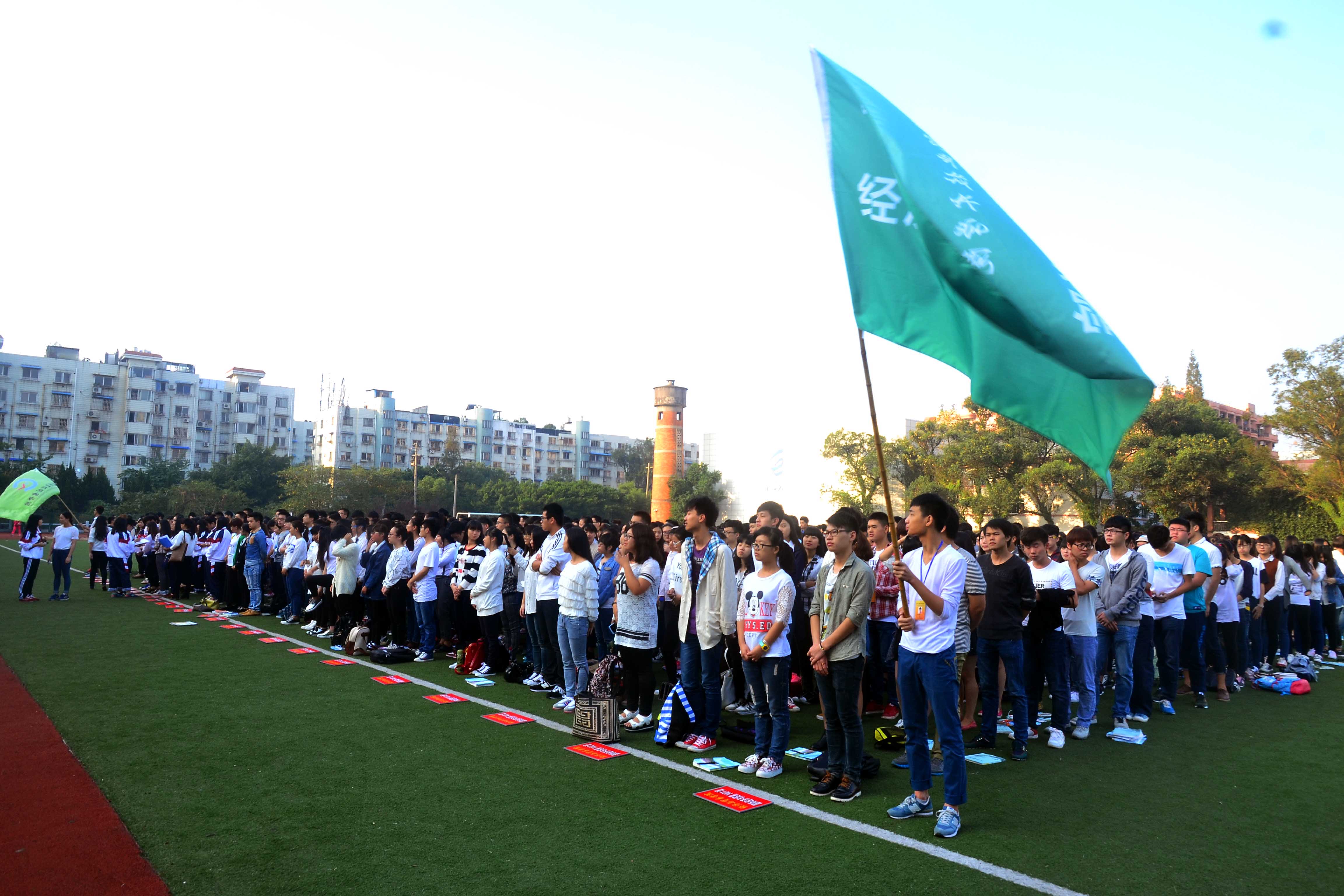 10月20号上午7:30,经贸公司在操场举行升国旗仪式。经贸公司党总支书记项光春出席仪式并致辞,辅导员向政老师主持,全院师生参加升旗仪式。