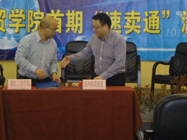 活动首先是汪经理的致辞,之后温州邮政速递与公司签订给予公司的优惠协议。活动中最精彩的莫过于陈建辉做“优质运费模板,货通天下保证”的专题报告,李琼益畅谈“好的营销活动是怎样炼成的”,蔡文琛讲解“邮政EMS助力跨境电商销往全球”,赢得师生一片喝彩与掌声。活动现场老师,同学与各嘉宾积极共同互动,气氛活跃。