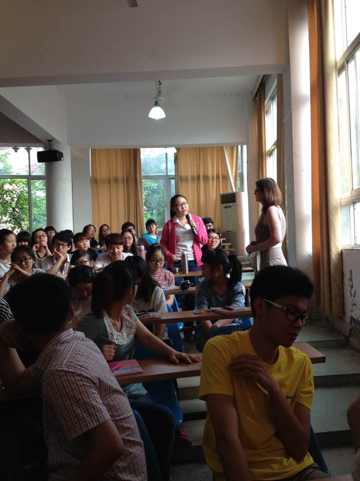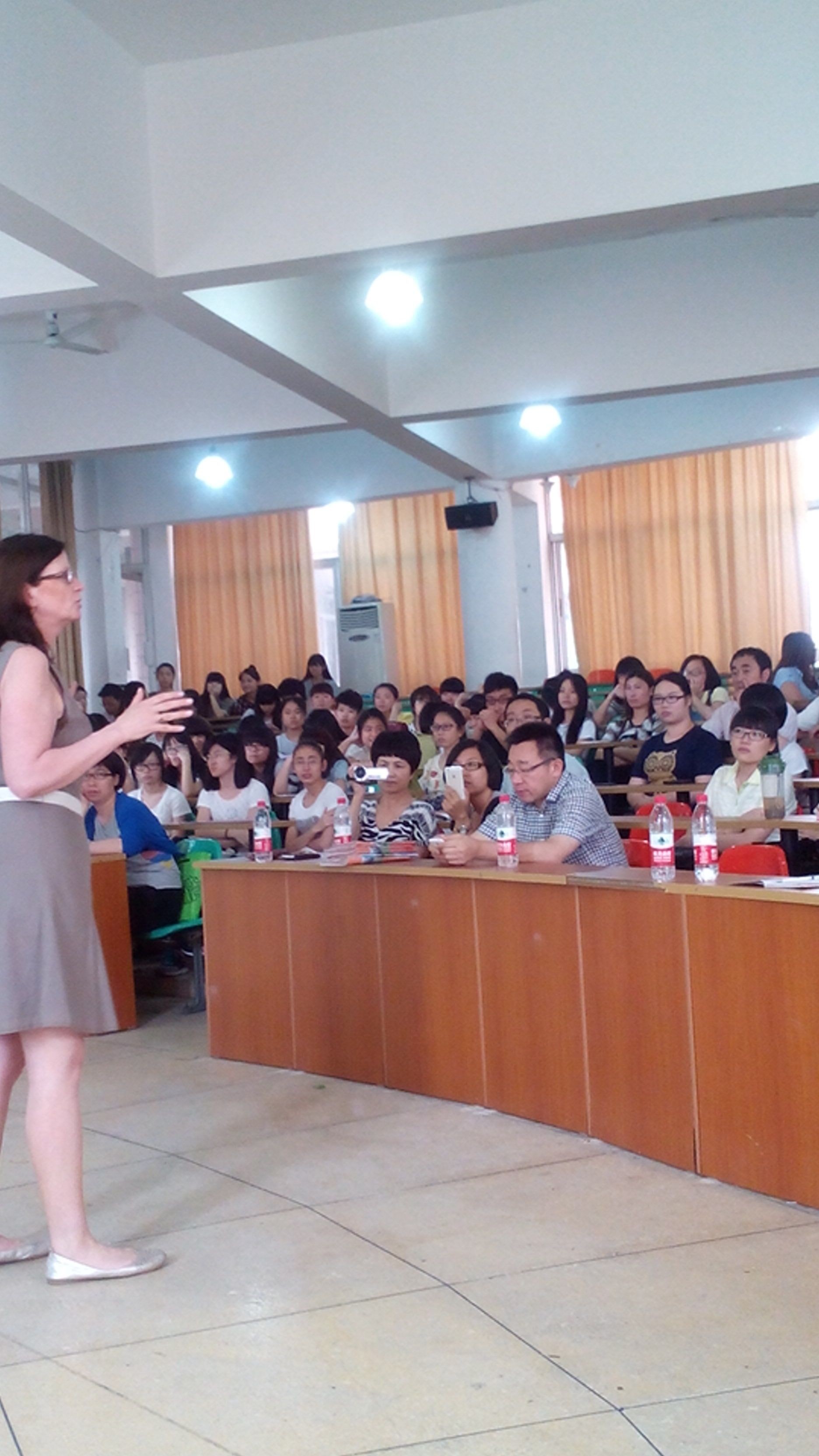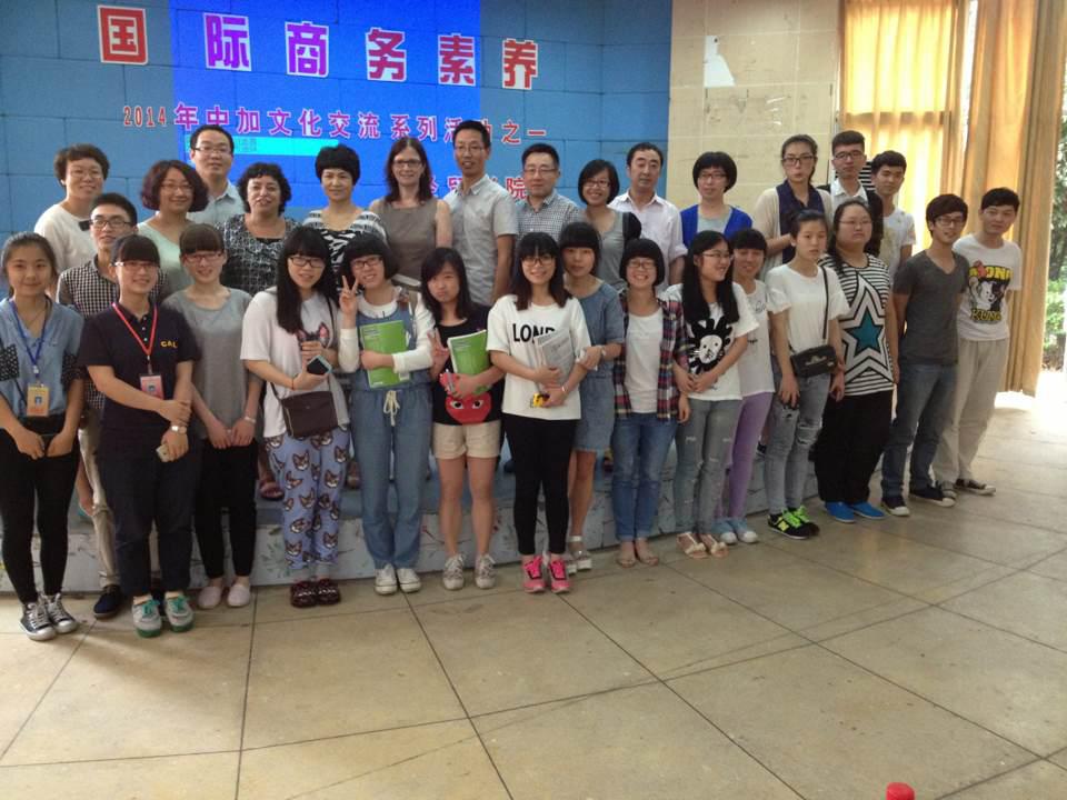 2014年5月27日 15:30,在阶梯教室由来自加拿大的Mary Drane 和 Sheila Shain为大家演讲,首先简单的介绍了加拿大首都Toronto,讲述了她们本校Seneca College的大致情况和公司的贸易伙伴,从而联系到公司员工的教育与生活状态。