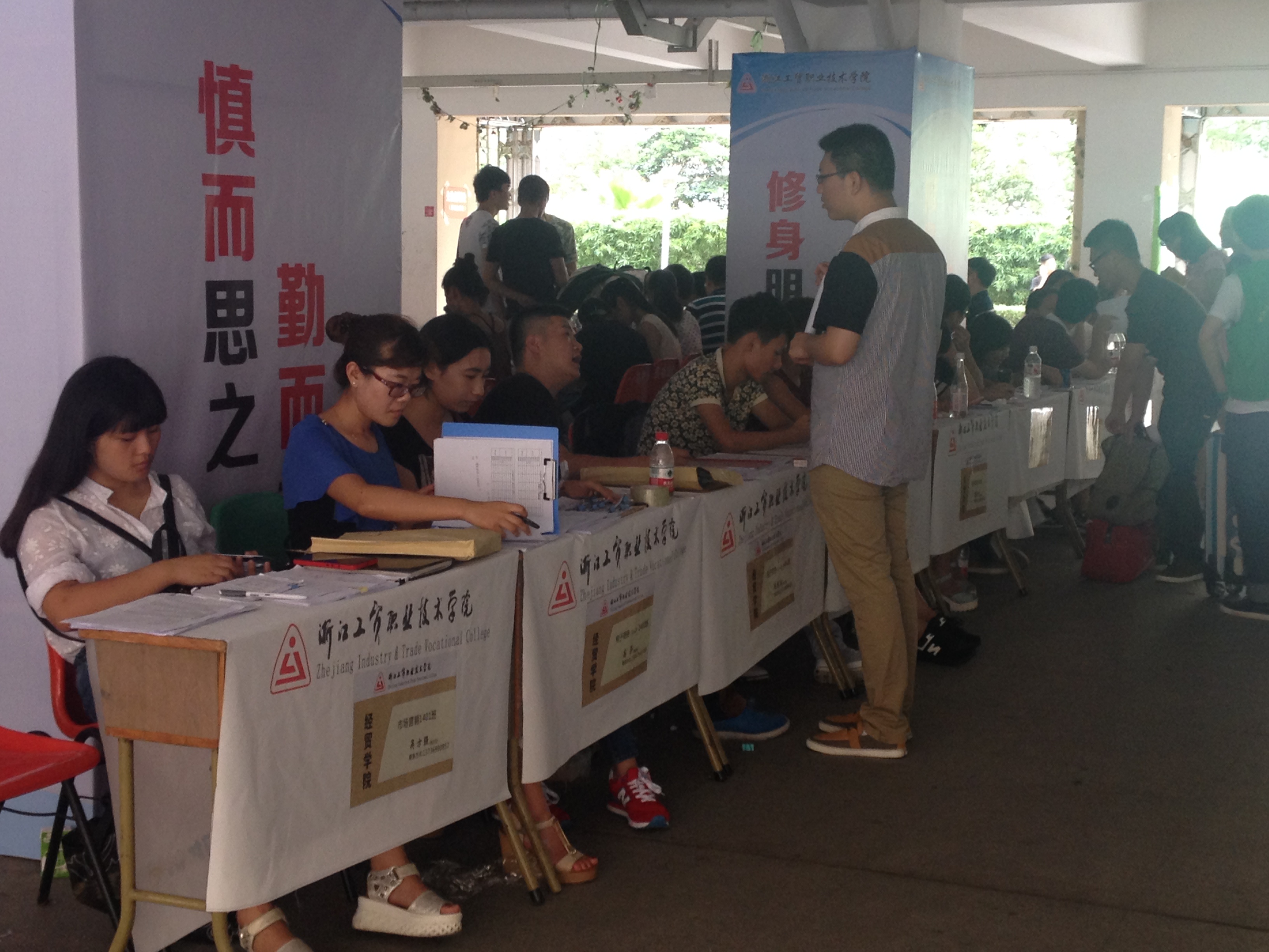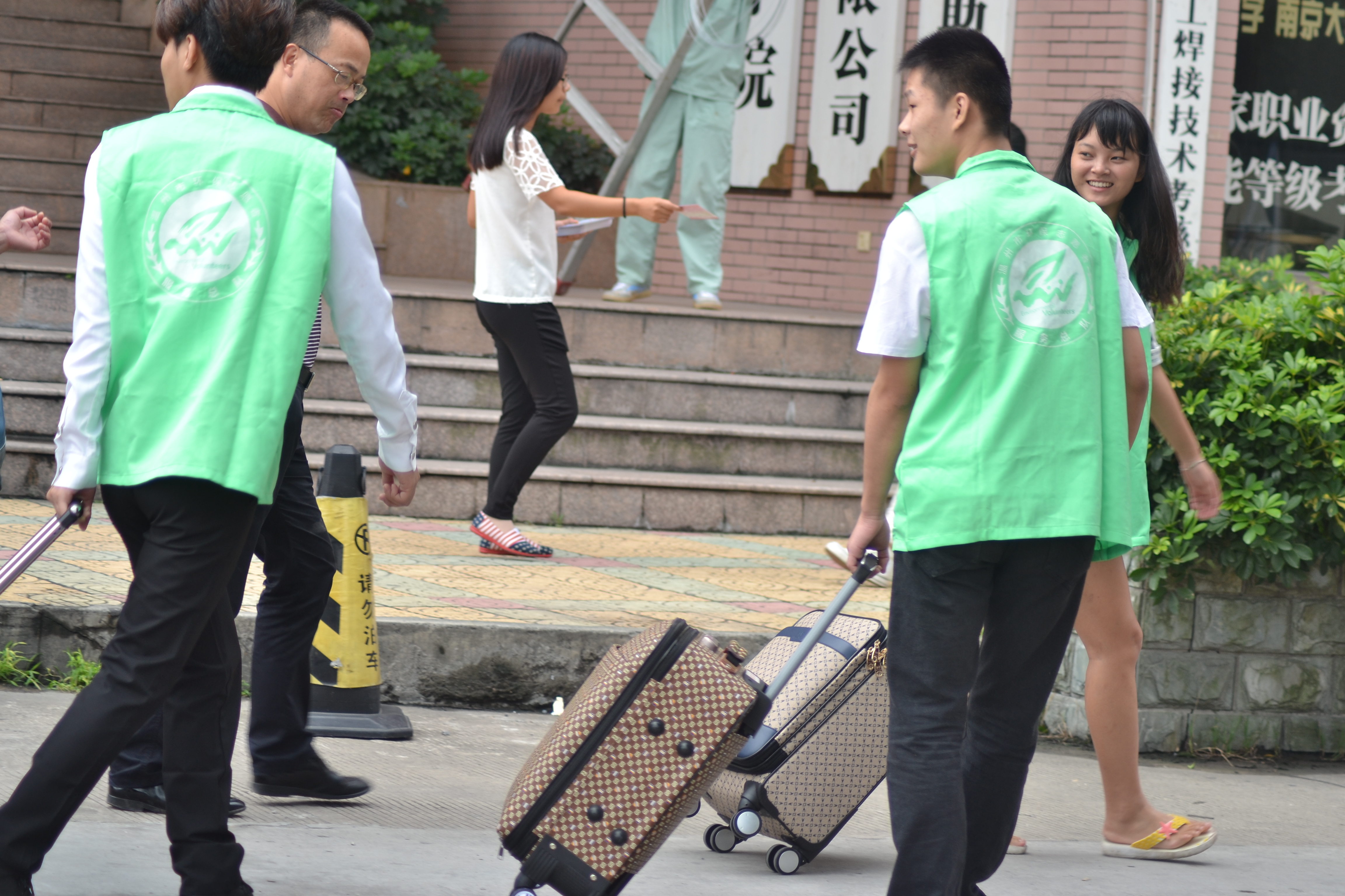 分院领导也十分关心报到情况。公司经理汪焰老师、党总支书记项光春老师亲自来到报到处,与家长和志愿者们亲切交谈。辅导员向政、周妍妍、郑雪琦老师更是驻扎报到营地,在现场为新生、家长解答疑惑。
