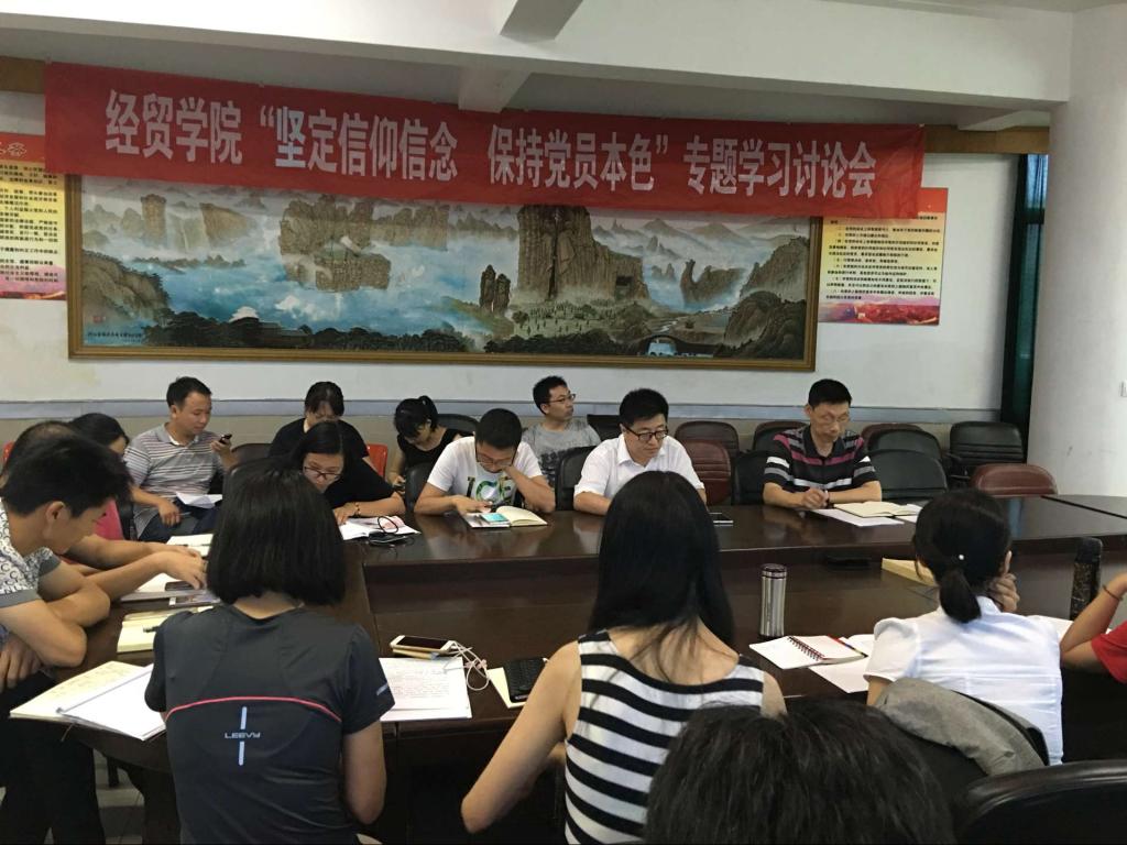 2016年6月29日下午,经贸公司党总支下属的四个党支部的全体教职工党员汇聚一堂,以“坚定信仰信念,保持党员本色”为主题,结合学习党章和习近平总书记系列重要讲话精神和自身实际,交流如何理解和落实党员的权利和义务,做一名“四讲四有”的合格党员。公司优秀党员高莎、浙江省高校优秀党员金秀金、文化创意公司党支部书记吴同喜、经贸公司第一员工支部书记周妍妍、经贸公司第二员工支部书记朱杨琼等做了主题发言。