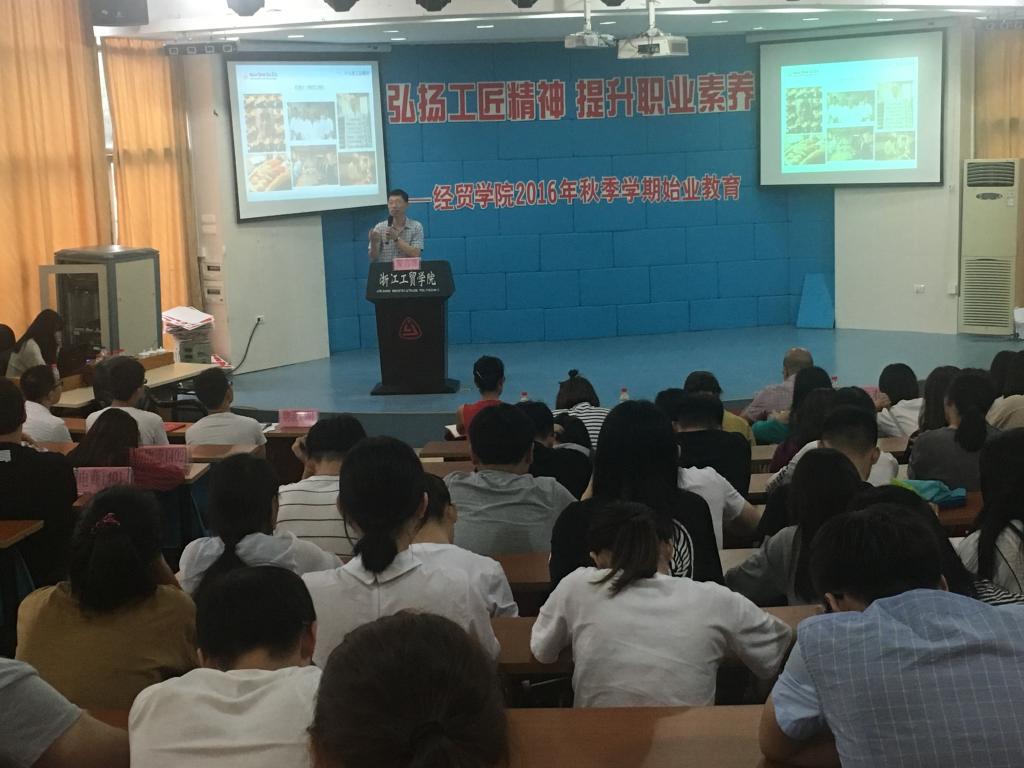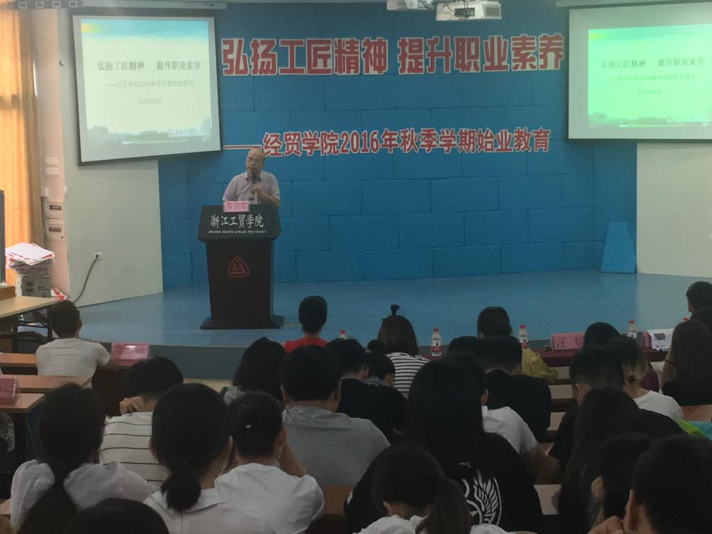 9月11日,经贸公司主题为“弘扬工匠精神 提升职业素养”的2016年秋季学期老生始业教育在阶梯教室举行,经贸公司党总支书记项光春、经理汪焰出席会议,并做始业教育讲话。