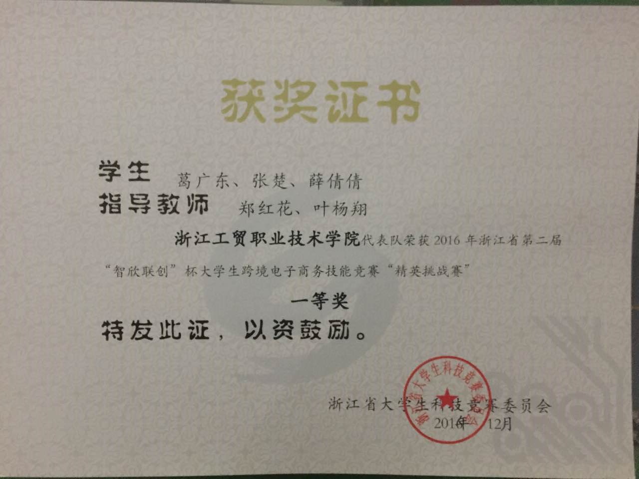 浙江省第二届“智欣联创”杯老员工跨境电子商务技能竞赛从9月初开始历经三个多月,于12月中旬最终落下帷幕。通过前期的速卖通店铺实战业绩考核和后期的跨境电商软件模拟考核,公司国际贸易专业葛广东、张楚、薛倩倩三位同学(指导老师:郑红花、叶杨翔),最终获得团体一等奖,总得分位列所有参赛团队第一名。这是自去年首届该项赛事举办以来公司再次蝉联一等奖。