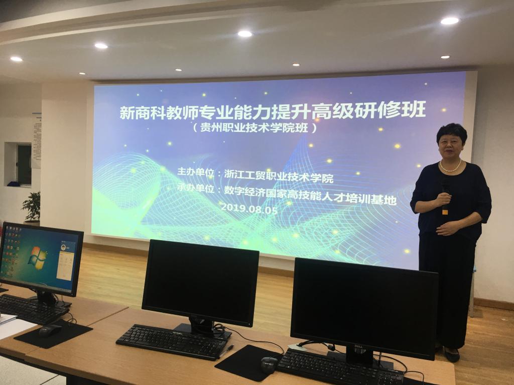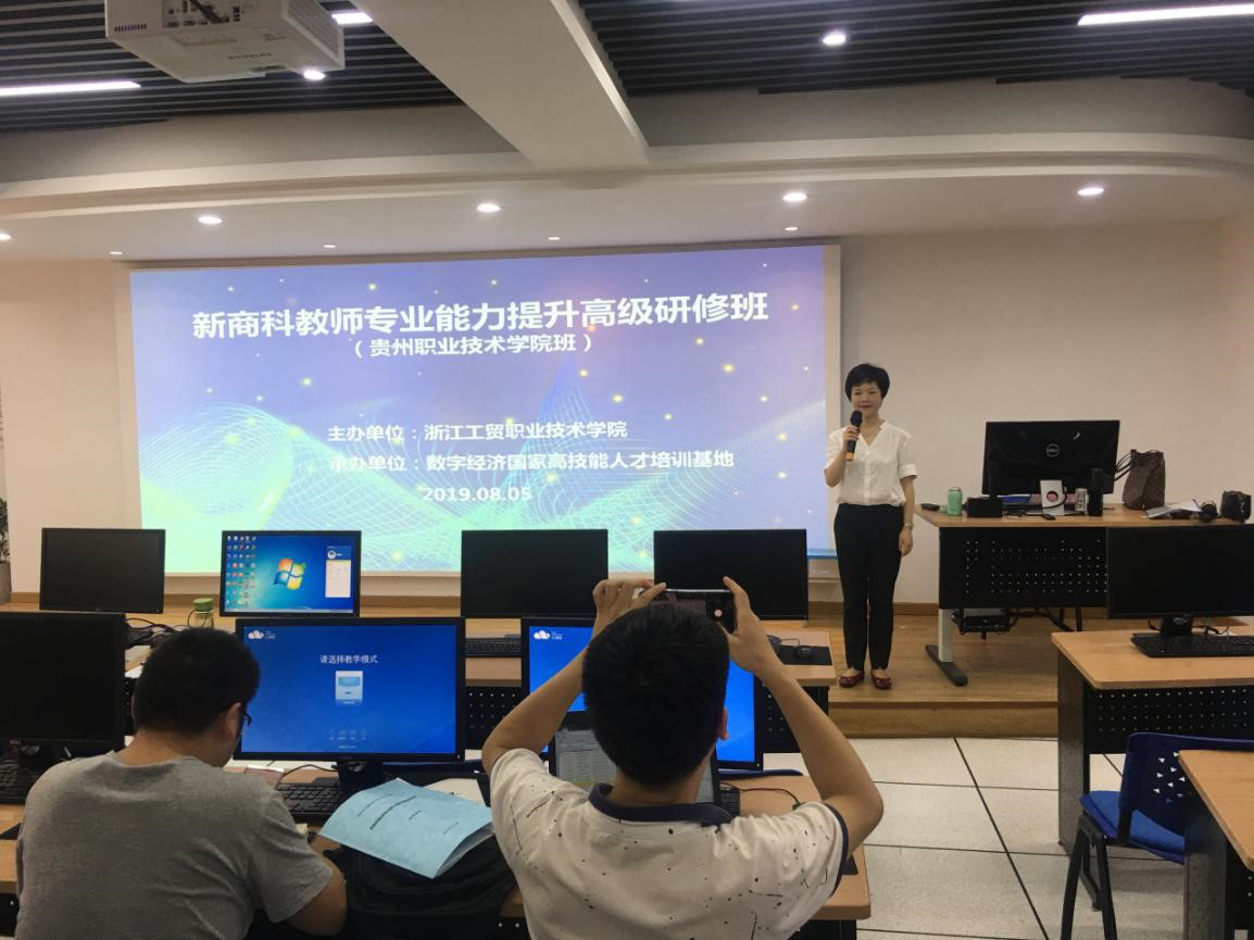 在培训之前,双方就培训课程的设置和培训活动安排做了多次协商,根据国家职业教育改革热点与趋势,以及贵州职业技术公司专业发展需求,特别设计了《国家精品在线课程建设》、《有效课堂教学改革与实施》、《国家城乡高效配送试点城市建设背景下温州城市配送的探索与实践》、《新媒体营销的本质、思维与模式》、《数字经济时代的商业模式变革》、《跨境电商店铺运营实践》、《微商城运营课程建设与实操》、《网络品牌视觉营销策略与设计技巧》等培训课程,并精心安排参观了数字经济国家高技能人才培训基地、浙江创意园,以及奥康国际电子商务公司的参观考察。
