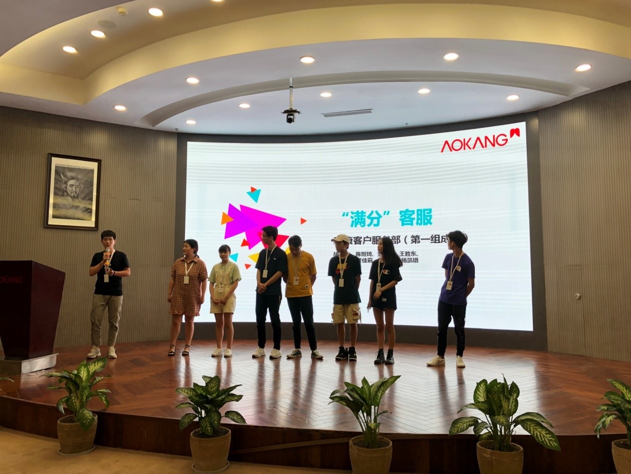 本次拜师仪式在欢快和充满激情的音乐声中启动,第一阶段是学员培训总结汇报,经过一个星期的企业培训,全班同学分成4个小组分别进行培训汇报,各个小组分别汇报本次培训的收获、心得体会、需要改进的地方和今后努力的目标,经过紧张激烈的PK,最终第一小组荣获本次培训汇报的第1名,奥康商城总经理陈祥武先生给获奖的同学颁发了奖品和优秀学员证书。