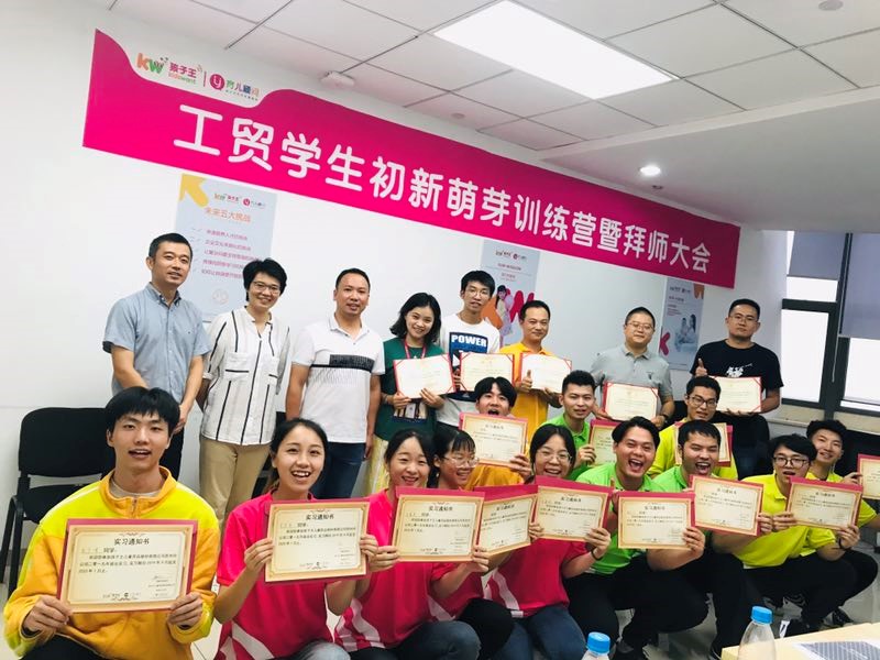 今年已经是市场营销专业与孩子王公司人才培养合作的第六年, 工贸公司市场营销专业员工与孩子王公司行业师傅在孩子王苏州分区会议中心举行了庄重的拜师仪式。孩子王苏州分公司总经理赵振道、孩子王苏州分公司人事部经理李敏、公司经贸分院副经理陈碎雷老师、市场营销专业叶丹丹老师、孩子王企业指导老师于宏礼老师、孩子王苏州分公司各门店店长、企业师傅、市场专业学徒参加了拜师仪式。