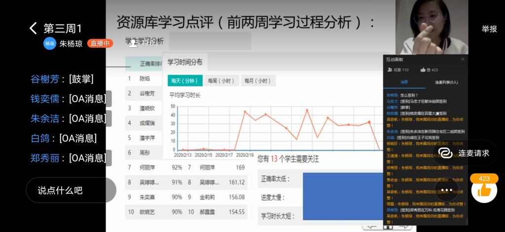 3月4日下午2点30,经贸分院商务英语专业朱杨琼老师《商务英语视听说》在钉钉群直播,这是经贸分院推出的第一门线上公开课,也是2月26日和2月28日分院开展的开放观摩课。在直播开始前15分钟,公司60多位老师来到直播间签到,此次线上课堂,与员工一起“上课”的老师比员工多。