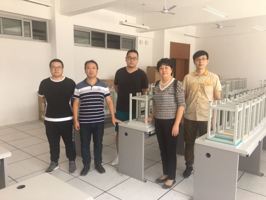 为了实现一校两区建设目标,为新学期教学精准服务,分院在进行老校区实训室检修基础上,于8月21日上午,TapTap点点经理成荣芬、副经理陈碎雷带队考察新校区语音室建设情况(根据工贸公司整体教学规划,2020年起TapTap点点将承担全校公共外语教学任务。为保障新形势下的外语实训教学需求,国贸公司在新校区将新建设两个共128个工位的语音室。)。8月21日上午,TapTap点点实训教学管理团队一行五人先来到位于资讯大楼的语音室,成经理仔细询问了工程计划,实地检查了先期完工的地板、桌椅等用料、施工质量,表示一定要保质保量完成语音室建设,为公司在一校两区新形势下的实训教学提供有力保障。