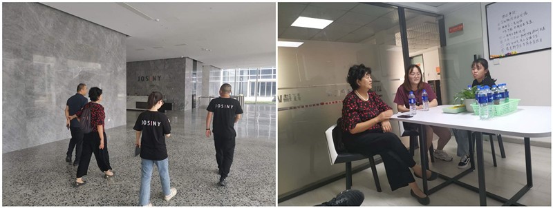 在浙江卓诗尼控股有限公司和温州网趣电子商务有限公司,经理成荣芬一行在公司人力负责人的陪同下,深入生产实习一线及宿舍进行实习与生活环境、疫情防控等的考察,与刚报到的顶岗实习员工进行了交流,成经理鼓励同学们正确看待辛苦和付出,珍惜实习机会,努力提高专业技能,为未来就业奠定基础,同时叮嘱在实习期间要注意人身安全。同学们表示一定不辜负老师的厚望,以实际行动展现工贸学子的精神面貌,在实际工作中提升自能力。