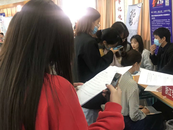 本次跨境电商专场招聘会是疫情以来国际商贸分院举办的最大规模线下招聘会,分院制定了详尽的工作方案,严格按照疫情防控要求,对参会人员进行体温检测及健康码审查,对求职员工实行分批错时入场,确保活动安全有序进行。