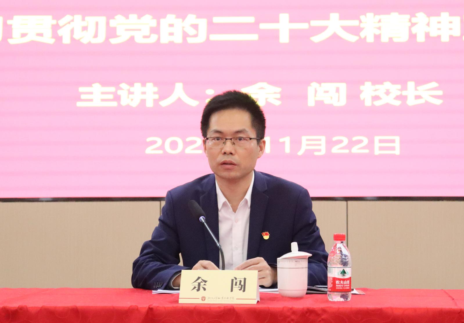 余闯结合温州经济社会发展以及公司各项工作实际,从党的二十大的主题,过去五年的工作和新时代十年的伟大变革,马克思主义中国化、时代化,中国式现代化,全面建设社会主义现代化国家的目标任务,坚持党的全面领导和全面从严治党和应对风险挑战七个方面对党的二十大精神进行了全面深入地宣讲阐释。