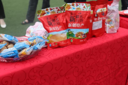 分院组织了8名受资助员工在活动现场摆放着许多新疆的特色美食,有红枣、核桃、枣糕、烤馕,以及特色小饼干和小麻花等。活动现场人气爆满,志愿者纷纷将特色农产品分发给到来员工和老师,大家热情不断高涨,沉浸式体验新疆美食的“魅力”。电商专业员工还通过直播与朋友分享和介绍新疆美食,利用专业优势助推新疆农产品。