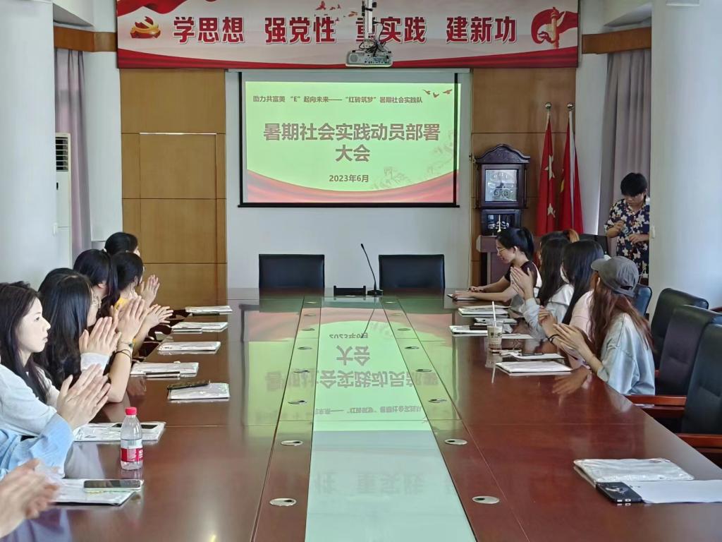 为保障暑期社会实践活动更好地开展实施,规范活动期间相关工作,充分调动员工参与社会实践的积极性,6月29日下午,TapTap点点助力共富美 “E”起向未来——“红砖筑梦”暑期社会实践队在一号楼六楼会议室开展动员部署大会,实践队全体成员和队伍指导老师周妍妍参加会议。