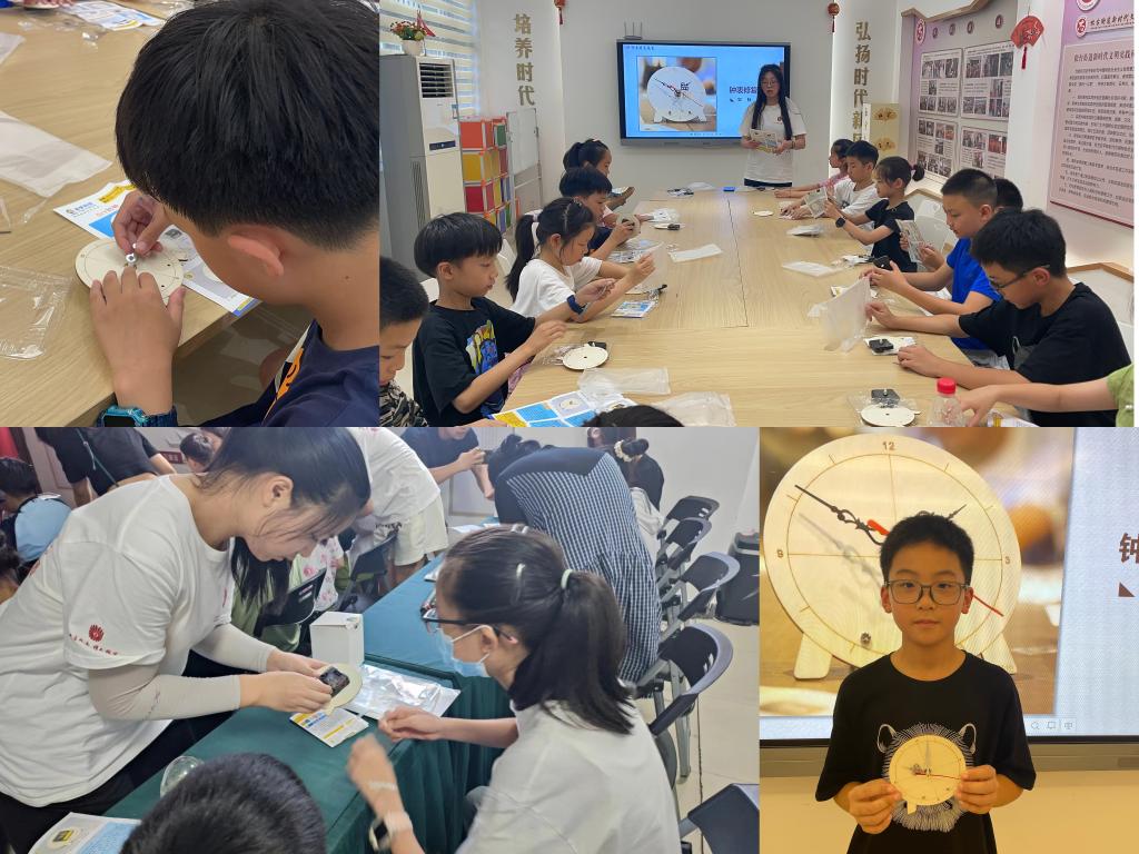 小朋友们体验钟表制作体验非遗——钟表修复技艺,通过课堂学习和方法演练,一步步操作按顺序摆放螺丝和指针旋转螺帽、按压连接,最后一步给钟表装上电池指针,立马注入活力,钟表哒哒哒地转动起来。此次活动让小朋友近距离感受到传统手工艺的精妙,体味到传统民俗文化的韵味和深深的工匠精神。