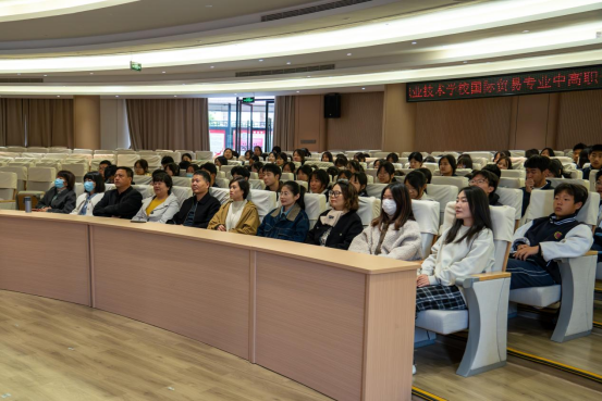 交流会上,成荣芬经理对温岭市职业技术公司来访表示诚挚的欢迎,她称赞了温岭市职业技术公司近年来取得的非凡成就。她指出,分院与贵校开展人才共育是推进人才培养模式转变,加快公司跨境电商产业公司建设的重要举措。中高职分段培养,基础在中职,出口在高职,两校能缔结友好合作关系是缘分更是机遇,她希望能以“3+2”贯通培养的现代职业教育体系为载体,增强双方在人才培养、教学经验、课程建设等方面的优势合作,保障培养质量,实现合作共赢。国际贸易专业主任叶杨翔从专业建设、产教融合实践、课程改革、团队队伍建设等方面对合作专业进行了全面的介绍,丰富的教学成果、完备的实训基地、高质量的团队水平、科学的课程建设等特色,获得到了温岭市职业技术公司一行的一致好评。