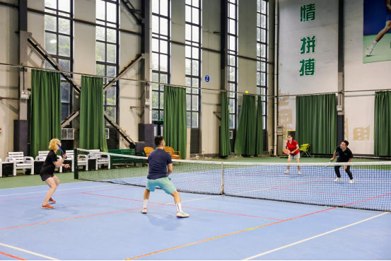 在公司网球公司,公司优秀网球教师和美国教师们进行了一场酣畅淋漓的切磋交流,进一步拉近了彼此的距离,加深了中美两国教育工作者之间的友好关系。