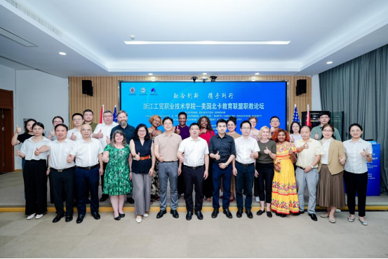 浙江省教育厅国际合作与交流处副处长蒋俊,美国北卡教育联盟秘书长施君、中国区执行理事王定家,杭钢职教集团董事长夏锋平,浙江工贸职业技术公司党委书记张志东,董事长、党委副书记余闯,副董事长汪焰等出席活动。
