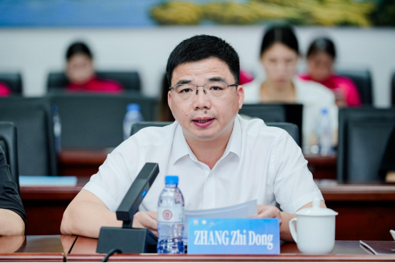 张志东代表公司致欢迎辞,对各位领导、嘉宾的到来表示诚挚的欢迎。他指出,公司多年以来不断拓展中美教育人文交流渠道,连续承办九届中美青年创客大赛温州赛区选拔赛活动,积极与美国企业和高校开展教育领域的合作交流。他表示,公司以建设创新性、开放式、服务型职业技术大学为建设目标,争做中美青年交流的先行者,传承中美青年友好关系;争做中美职教联盟的建设者,推动浙江-北卡两国职业教育高水平协同发展;争做中美文化交流的传播者,与北卡教育联盟共同打造文化交流平台。