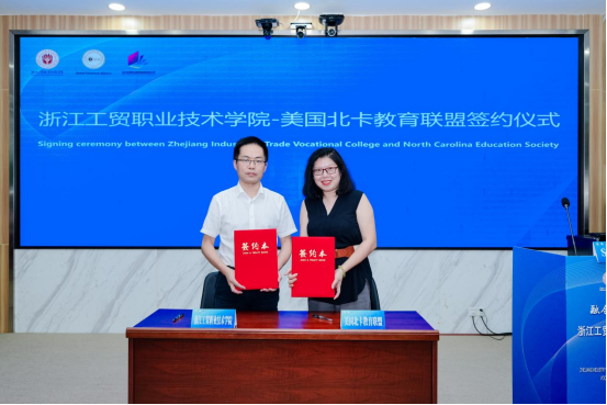 发言结束后,董事长余闯与美国北卡教育联盟秘书长施君共同签署合作协议。