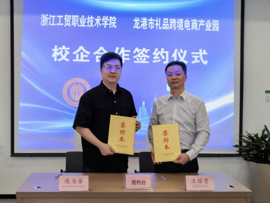 本次活动还举行了隆重的签约与授牌仪式。王耀贵书记与龙港市礼品跨境产业园陈为赛总经理共同签署了产学研实训基地和就业实习基地协议,并完成了授牌。这一举措不仅为公司与企业之间搭建了紧密的合作平台,也为员工们提供了更多实习与就业的机会。
