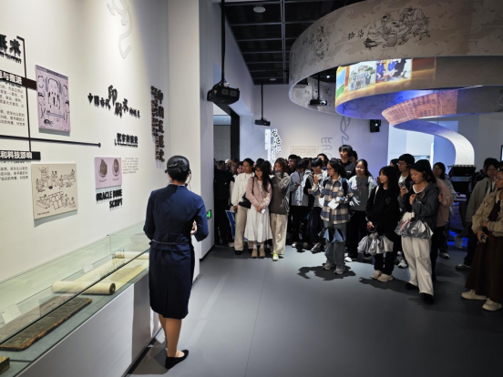 本次活动共分为三支队伍,分队一参观印艺小镇一楼展厅。在这里,员工们不仅领略了现代化印刷企业的风采,还深入了解了从设计创意到产品包装,再到跨境电商的全链条流程。讲解员的细致讲解,让每一位员工都对这个行业的融合创新有了初步的认识。随后,同学们听取朱秋城专家的专题讲座《2024年中国外贸跨境宏观趋势解析》,对当前的国际贸易形势有了更全面的了解。