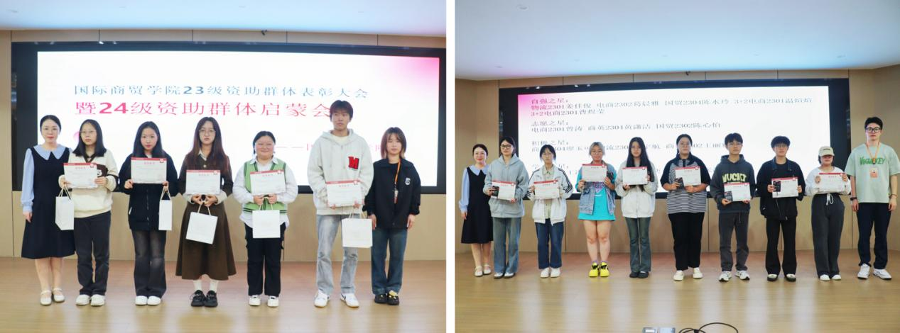 发言结束后,范呈彬老师为优秀学子们颁发了荣誉证书和礼品并合影留念。这不仅是对他们的肯定,更鼓励着他们继续逐梦前行,成就自我,以坚定的步伐迈向更加辉煌灿烂的未来。