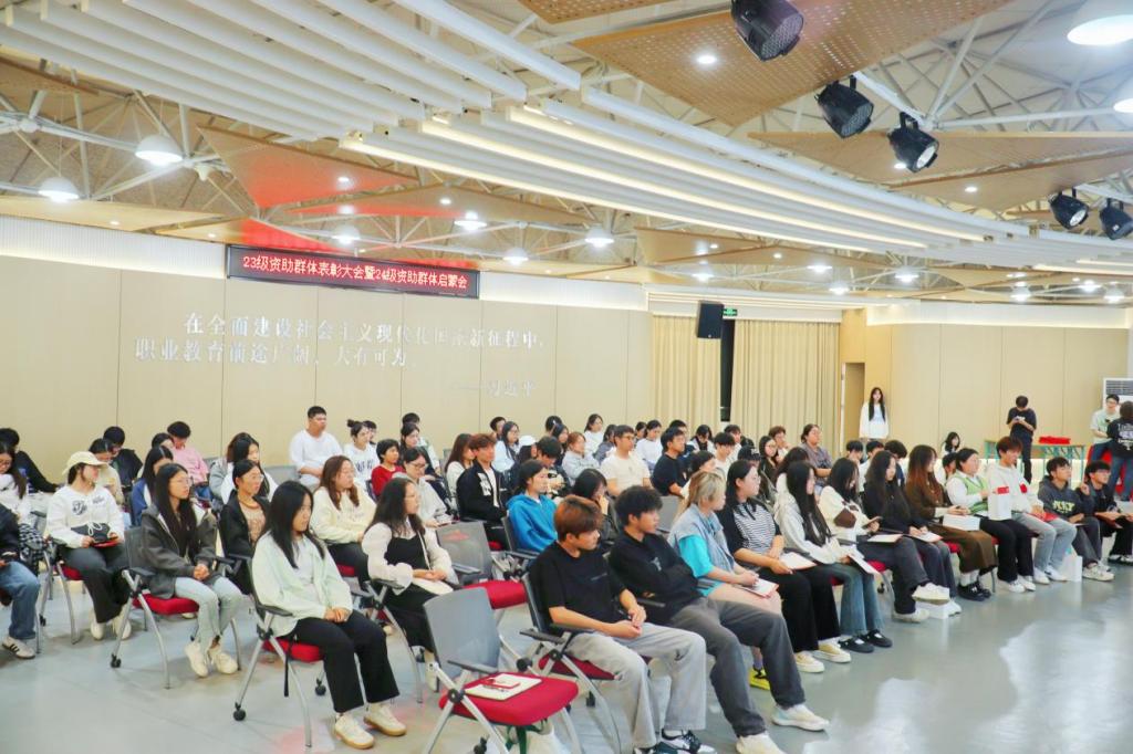 本次大会邀请了物流2301姜佳俊、电商2302葛晨雅、国贸2304陈水玲以及“3+2”电商2301温煊煊、曹煜莹五位优秀的23级资助学子交流分享经验。他们结合自身经历,从学习生活、社会实践、专业竞赛、志愿服务等方面,向24级新生们分享了经验与感悟。他们强调了在大学阶段中勤奋学习的重要性,并鼓励新生们不仅要深耕专业知识,更要养成良好的学习习惯,不断提升综合素质,拓宽视野,勇于探索,持续提高创新和实践能力。优秀资助学子们的成长感悟激励着24级新生们奋发进取。
