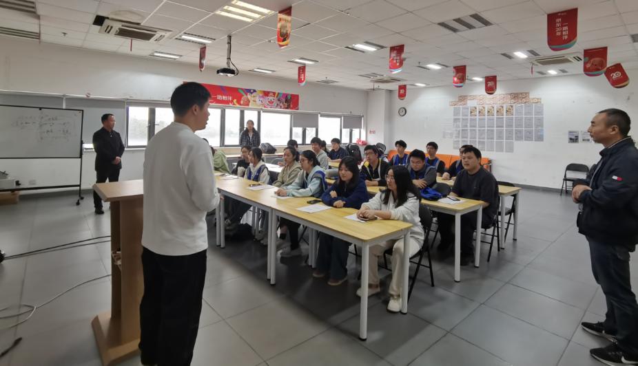 走访活动结束后,陈碎雷经理一行在京东会议室与企业负责人及员工们进行了深入的座谈交流,旨在全面了解员工的工作岗位、实习内容以及未来的职业发展机会。交流中万晓云主任关切地询问了员工对各自岗位职责的掌握程度以及食宿条件。随后,教师们针对员工在实习过程中遇到的各种困惑进行了耐心解答。