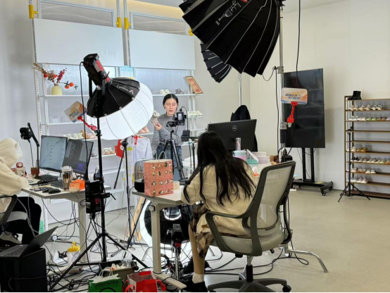 随后同学们前往森马的直播基地,从一楼的实时直播展台,到二楼的达人直播间,再到四楼的展示直播间衣服选品与文创的数字选品中心,直观展现出选品与直播间内容规划间的紧密逻辑关联,让同学们得以洞悉森马如何从幕后把控,以科学选品为直播运营筑牢根基,保障直播内容与产品供应高效协同,全方位呈现森马直播的运营智慧。
