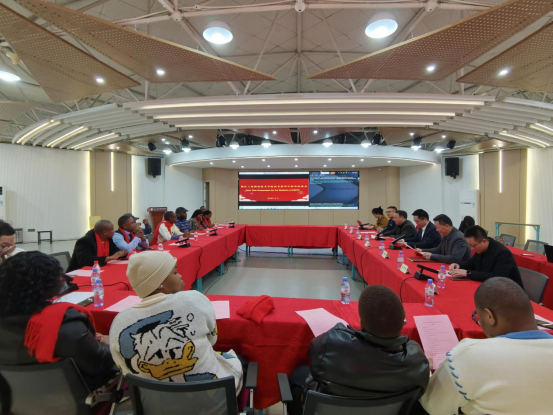 会议伊始,余董事长新春寄语,他介绍了近年来公司办学成果、办学定位与特色,总结了南非职工过去5个月在工贸公司学习情况并对他们在学业上的表现给予了高度评价。同时余董事长提出三点期望和要求:一是学习培训上精益求精,在专业技能领域学有所成。希望职工们能充分利用公司丰富的教学资源和优质的学习环境,勤奋学习,努力掌握跨境电商、市政管理、创新创业、产业合作与投资等专业知识和技能。二是文化交流上积极主动,成为中南文化交流的桥梁。中国和南非都有着悠久的历史和灿烂的文化,希望职工们能成为文化交流的桥梁和使者。三是未来合作上多方共赢,为推动中南职教合作多做贡献。集团将一如既往地为职工们提供优质的服务与支持,期待同学们在完成学业后,将在中国所学的先进职业教育理念和跨境电商、市政工程、创新创业、产业投资等技术技能应用到实际工作中去,助力南非职业教育和经贸领域的发展。