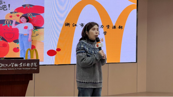 宣讲会上,王羽洁首先介绍了企业的基本情况与企业规模。她提到,麦当劳作为全球知名餐饮品牌,已在中国市场深耕30余年,浙江地区门店数量超500家。企业秉持“我们就相信年轻人”的人员品牌主张,为年轻人提供包容开放的就业平台。在介绍企业情况时,王羽洁重点分享了麦当劳汉堡大学的特色培训体系——全球9所汉堡大学每年为超过万名员工提供领导力、运营管理等课程,助力员工实现职业飞跃。