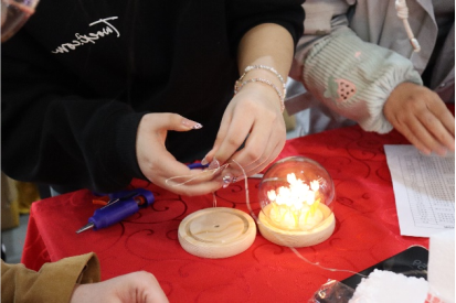 于是,一场创意与灵感交织的手工盛宴正式开启。有的老师低头专注,手中的剪刀在纸张间灵活跳跃,一个个普通的帆布包在她们的巧手下渐渐变得精致起来;有的老师细心地挑选材料,小心翼翼地制作着养生锤;还有的老师,围坐在柔和的灯光下,认真组装着郁金香小夜灯。整个现场,欢声笑语此起彼伏,创意的火花在每一次尝试与探索中不断碰撞,空气中弥漫着温馨、快乐与成就感,让这个三七女神节变得格外难忘。