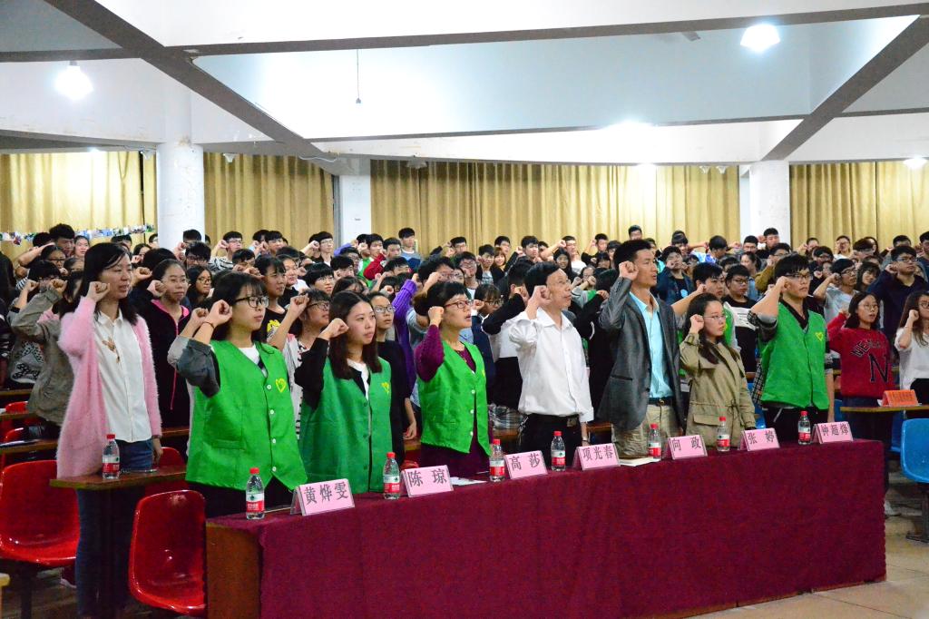 为了增强经贸分院青年老员工的奉献意识,让同学们切实感受“奉献、友爱、互助、进步”的志愿者精神,充分调动同学们的志愿服务积极性,10月29日,经贸公司在阶梯教室举办了以“忠于誓言 立于使命”为主题的志愿者宣誓活动。经贸公司党总支书记项光春出席活动并作总结讲话。经贸公司辅导员向政、郑雪琦、张婷、高莎等老师及2015级员工代表近400人参加了本次活动。