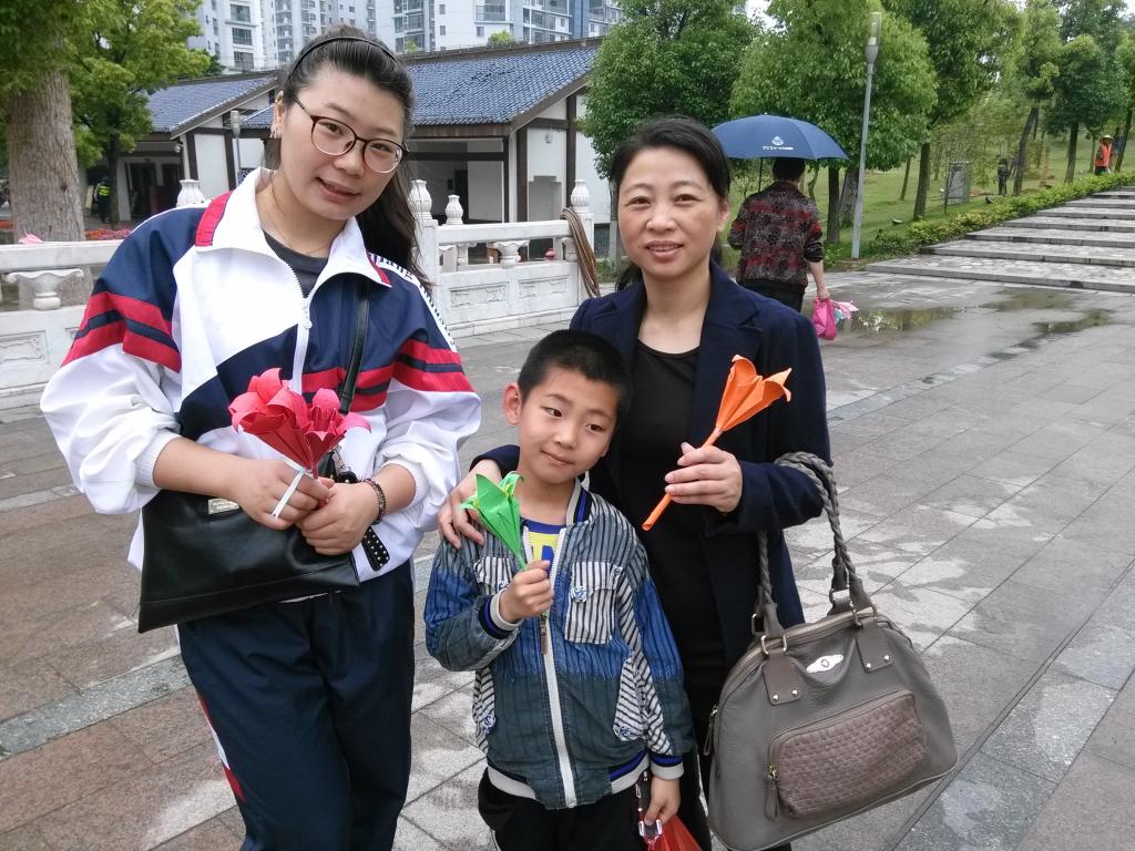 活动一开始,志愿者们在杨府山山下,人多密集处拉开横幅。志愿者们分发母亲节宣传单,再邀请市民在横幅上签名和在大板上写下对母亲的深深祝福,并赠送市民小礼物,包括折纸百合等手工艺品。