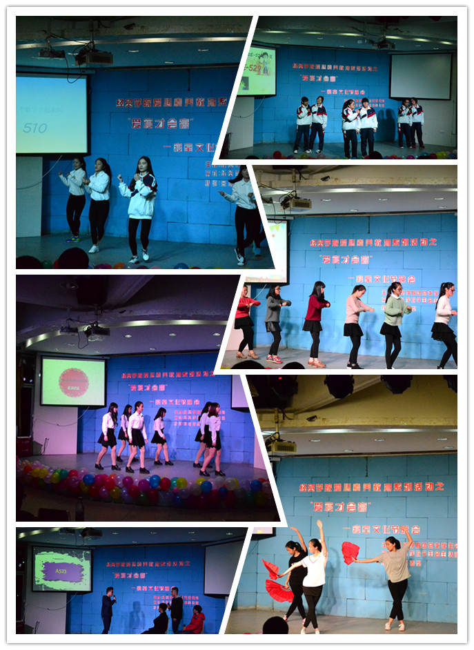 据了解,本次寝室文化节历时一个月,分为寝室装扮大赛、优秀寝室PK赛、寝室外部联欢活动及寝室文化节晚会四个部分,本次晚会为最终进入总决赛的13个寝室的汇报表演赛。表演赛分为PPT展示与爱“寝”风采。PPT展示部分,大家晒“全家福”、分享室友间的趣事、乐事、囧事,叙说满满的缘分与感动;爱“寝”风采,即寝室总动员,一起进行舞台节目展示。各寝室,或将寝室文化融入热歌《我的滑板鞋》,幽默诙谐的说唱及到位的肢体表演,让全场捧腹;或乐器表演,室友为其伴舞,配合默契、爱意满满;或才艺串烧,扇艺、舞蹈、合唱轮番上阵;或是自编自导自演一场小话剧,取材来源日常寝室生活却带有深刻的思考;或温情演唱,一曲《一个像夏天一个像秋天》,唱出室友既是同窗又是互帮互助又互懂的闺蜜情结,等等。最终,E502等十个寝室荣获本次文化节“十佳寝室”荣誉称号。