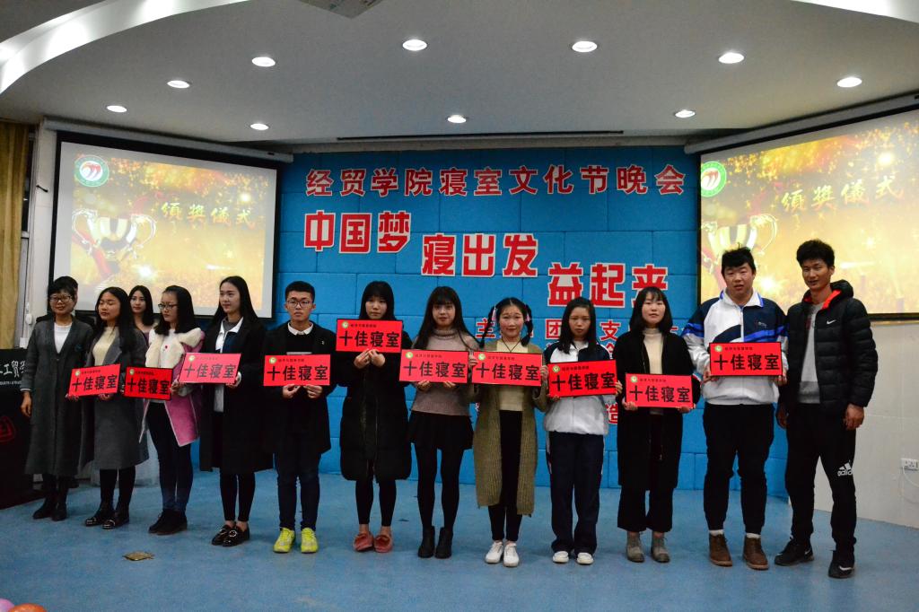 据了解,本次寝室文化节持续近半个月,包括室内装扮、室外游戏以及汇报晚会等环节。经过前期的室内装扮和室外游戏两个环节,最终有13个寝室入选最终的汇报晚会,进行“十佳寝室”的角逐。各寝室成员群策群力、集思广益,为晚会送上各类节目,歌舞青春,张扬活力。歌曲串烧,玩转各种音域;劲歌热舞,释放青春活力;《我们的青春》等大合唱曲目,展现寝室成员串联在一起的友谊,相互依赖,一个都不能少;《西游记后传》、《招亲大会》等小品,搞笑、幽默,是寝室成员创新和创能潜力的爆发,更是成员间默契配合的秀场;《青春永驻》等朗诵节目,深情款款,是寝室小伙伴真情的流露,字里行间见真心厚谊……最终,E929等十个寝室荣获经贸公司2016年度“十佳寝室”荣誉称号。