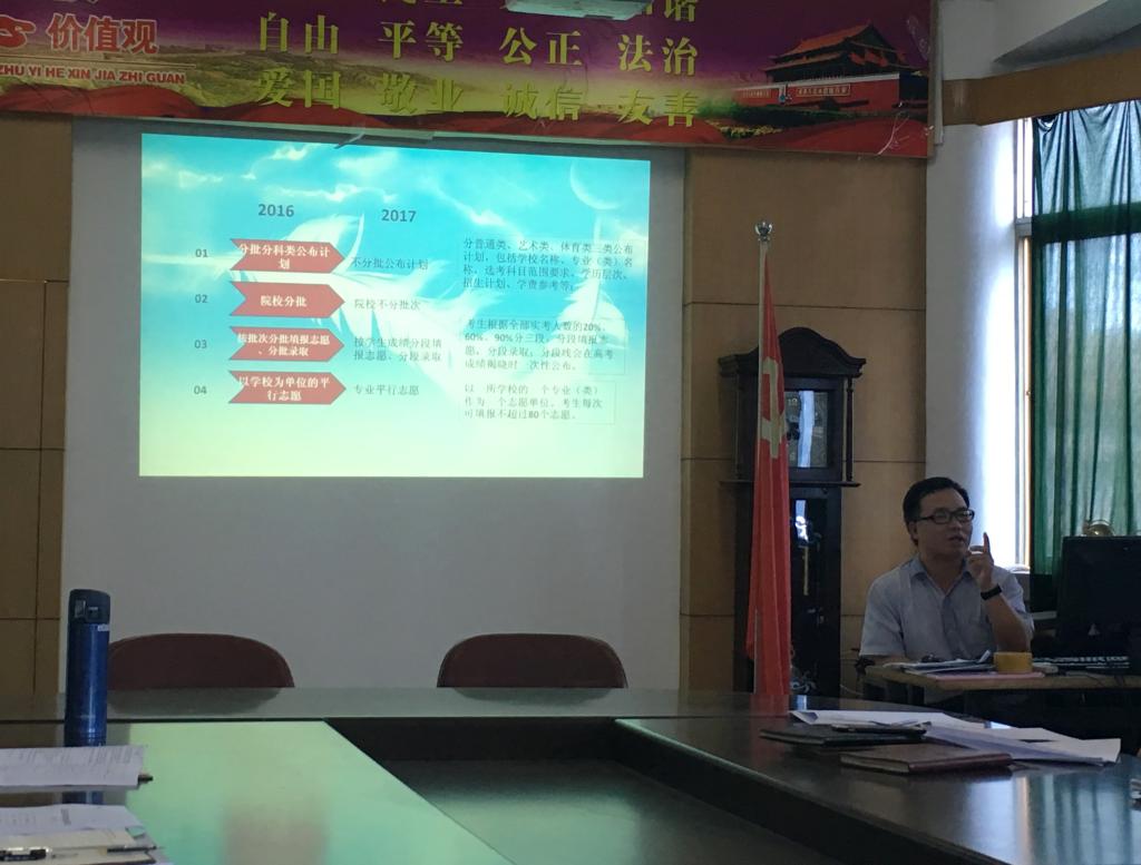 最后,张老师强调分院必须全力以赴做好高考招生宣传工作。针对2017年高考招生可能出现的结果进行深度分析,通过考生基本情况、录取办法变化、今年招生计划、区域宣传、考生问答、新高考咨询等方面的剖析,让老师们理解为何2017可能会出现某专业招不到员工或者分数很低的尴尬局面,希望分院全体教师主动出击做好各时段的招生宣传,提高生源质量,摆脱困境,为下一年打下良好的基础。