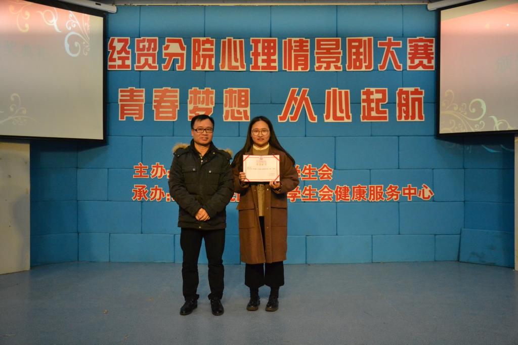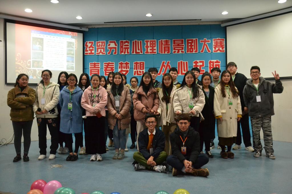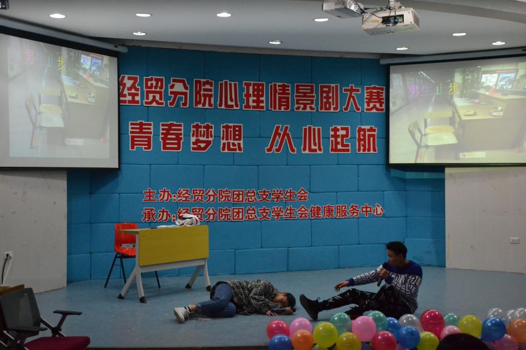 为了提高老员工对心理问题的认识,宣传心理健康知识,培养老员工坚强意志,传播积极向上的生活学习理念,12月18日晚上6点10分,经贸分院“青春梦想,从心起航”为主题的心理情景剧大赛在阶梯教室拉开帷幕。出席大会的领导嘉宾有:经贸公司党总支书记张勰、团总支书记吴妮妮、辅导员向政、郑雪琦、团总支员工会主席张丹等,经贸分院约300名员工到场观看比赛。